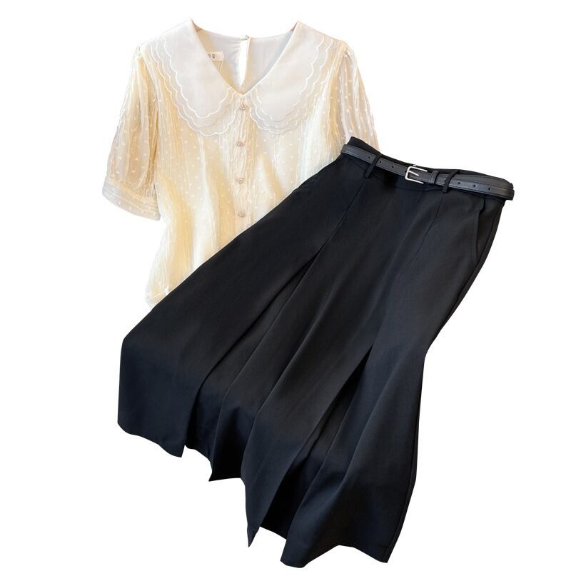 プラスサイズの婦人服 2023 夏の新しいファットシスターフランスの気質トップハイウエストカジュアルスカート 2 点セット ハイウェスト 大きめサイズ サマー 夏物 8884133628719852