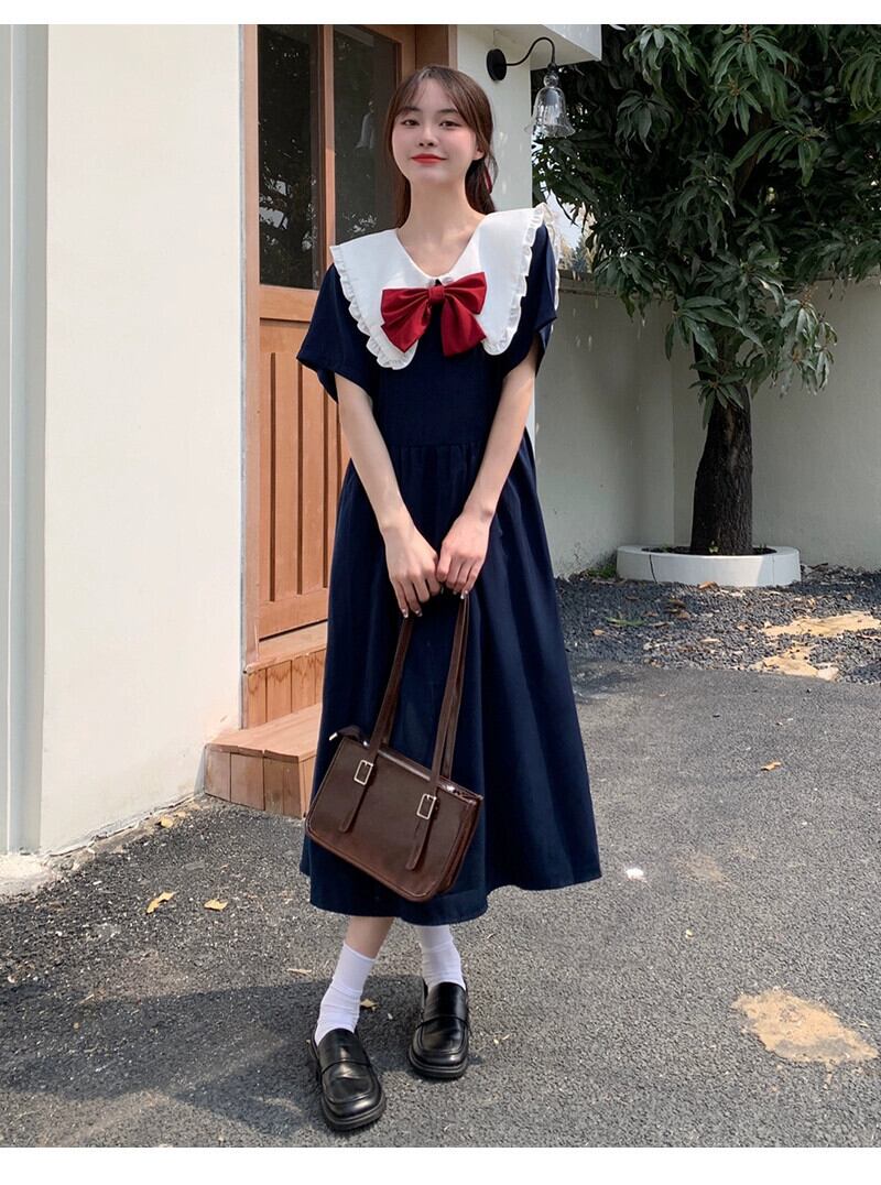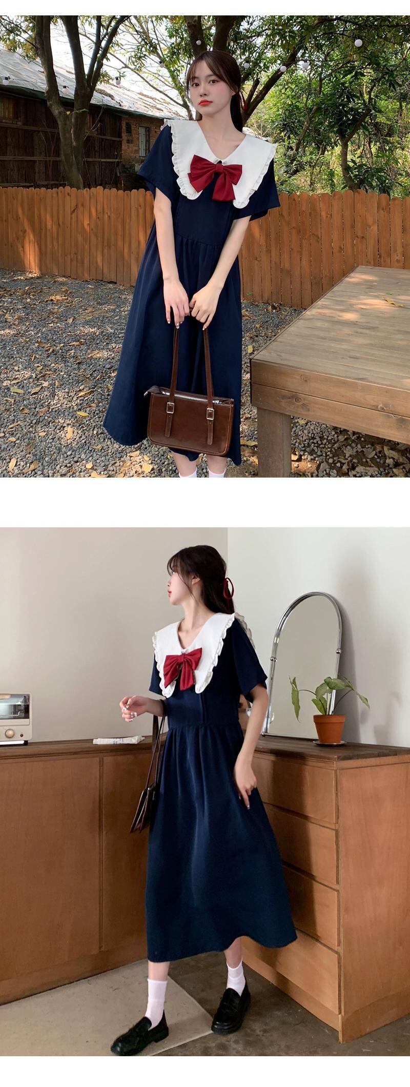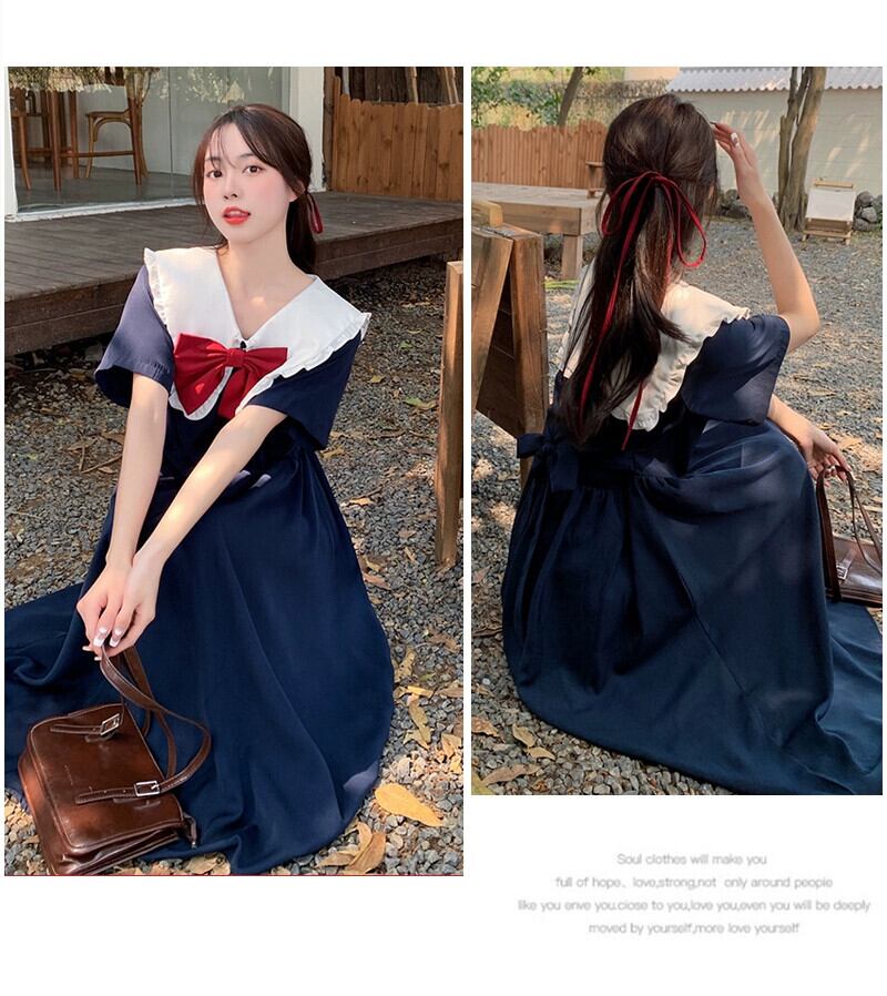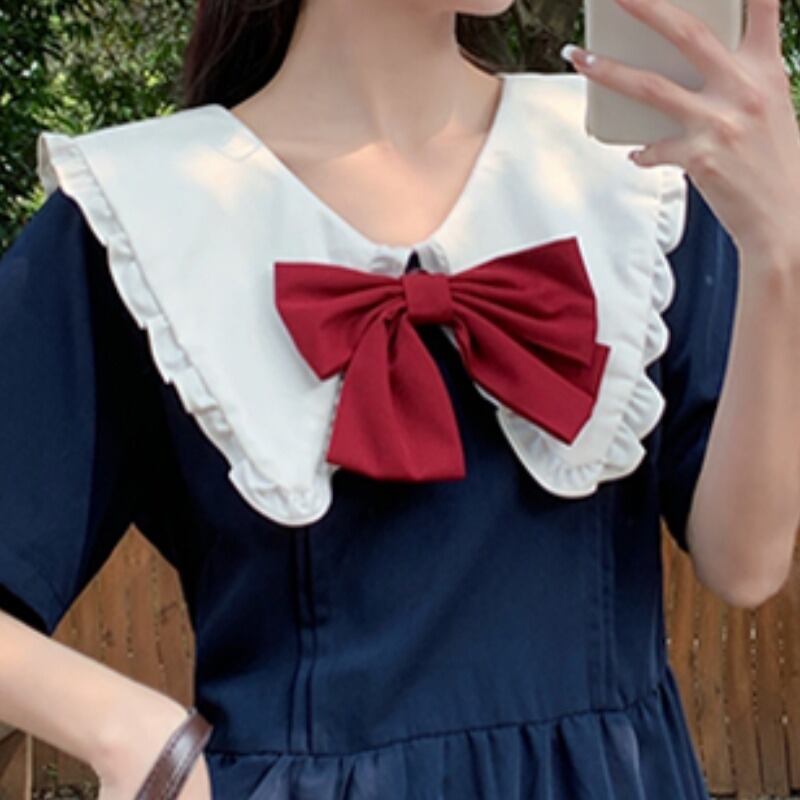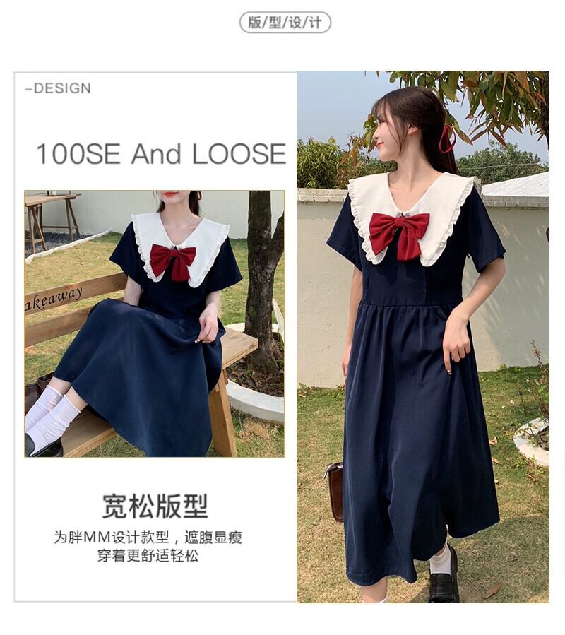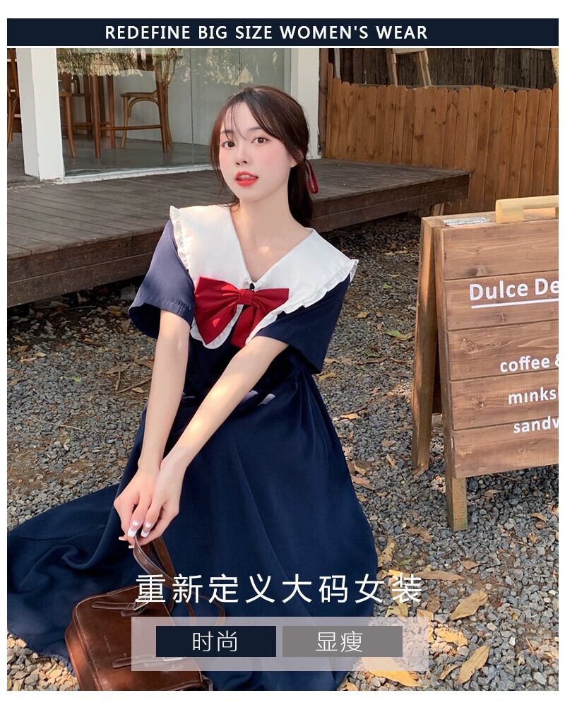 プラスサイズの婦人服 2023 夏の新脂肪姉妹気質デザイン蝶ネクタイウエストウエスト年齢削減ドレス女性 リボン 大きめサイズ サマー 夏物 8884188190627950