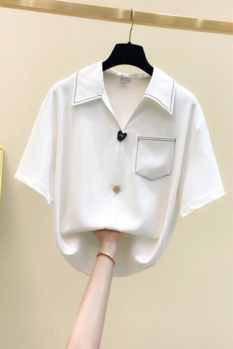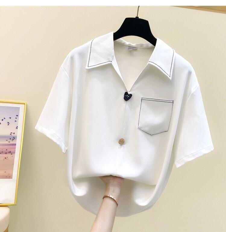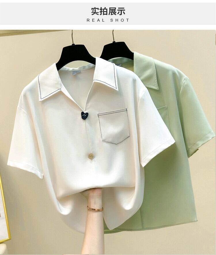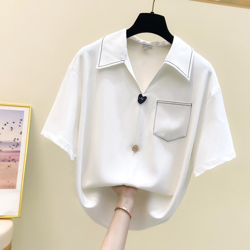 プラスサイズの婦人服 2023 夏の新ファットシスター半袖気質ルーズ腹カバー無地シックなカジュアルシャツ 大きめサイズ サマー 夏物 ソリッドカラー 8884145358023563