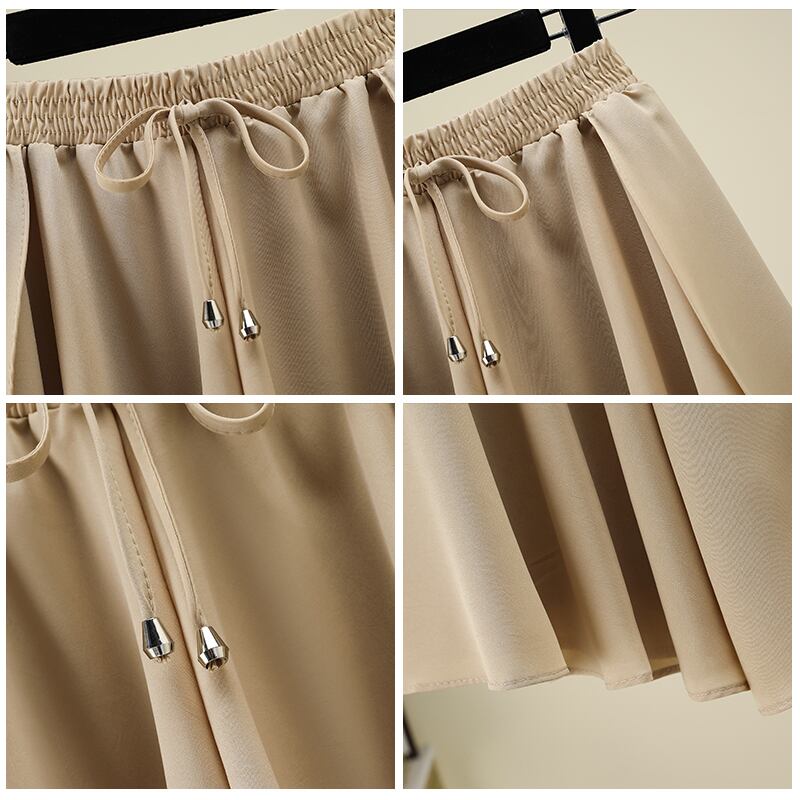 プラスサイズの婦人服 2023 脂肪姉妹夏の新シフォンプリーツスカートルーズスリムアイスシルクワイドレッグパンツ女性 大きめサイズ サマー 夏物 8884156013888038