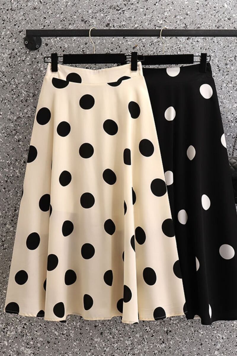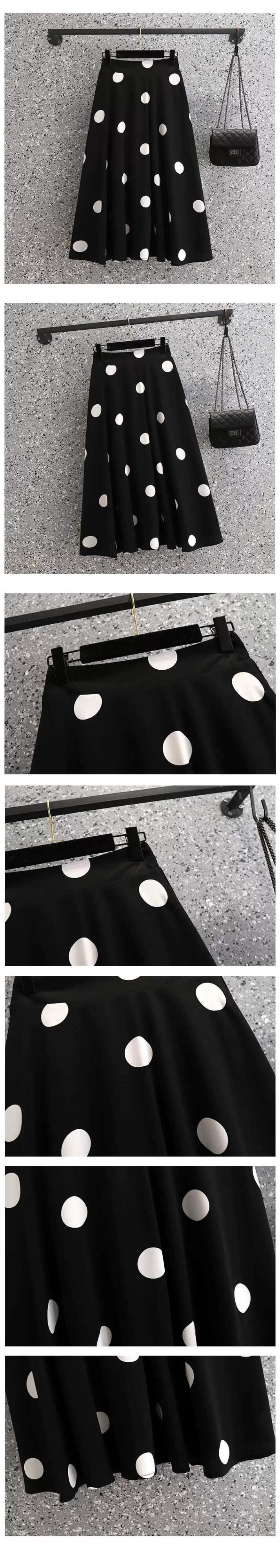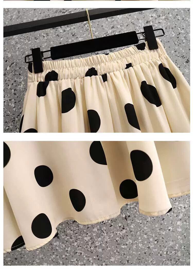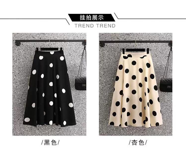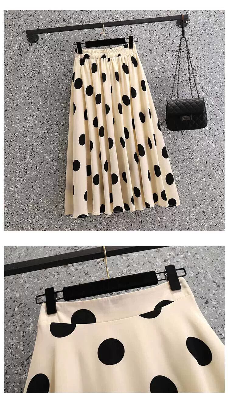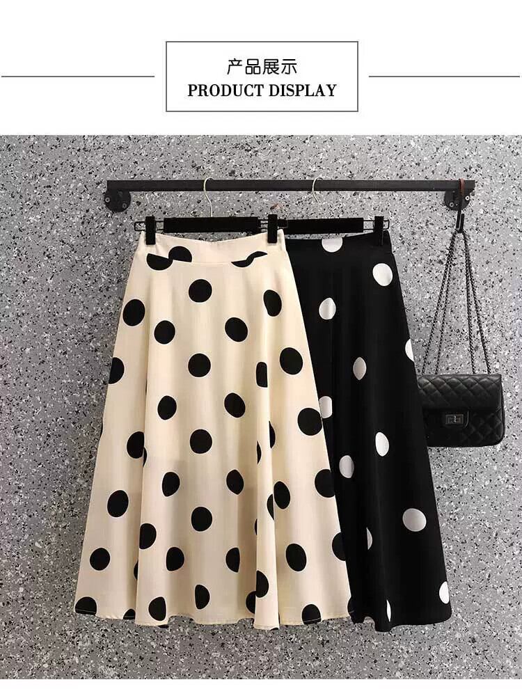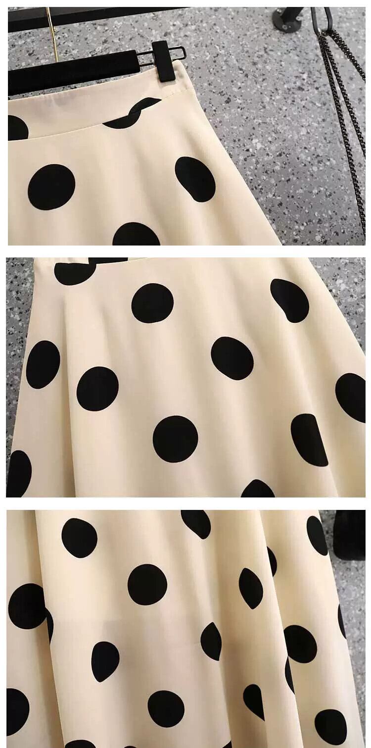 大きいサイズの婦人服 2023 春の新ファットシスターフレンチスタイルハイウエストウェーブポイント気質スリムカジュアルスカート女性 ハイウェスト 大きめサイズ スプリング 春物 8884125450850041