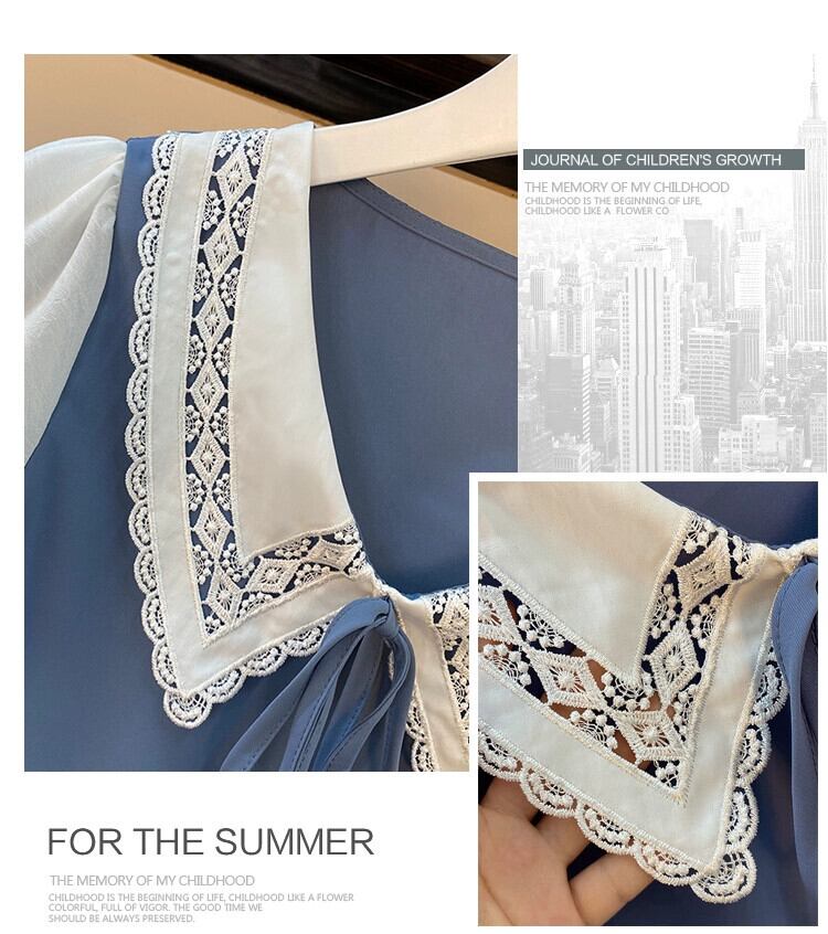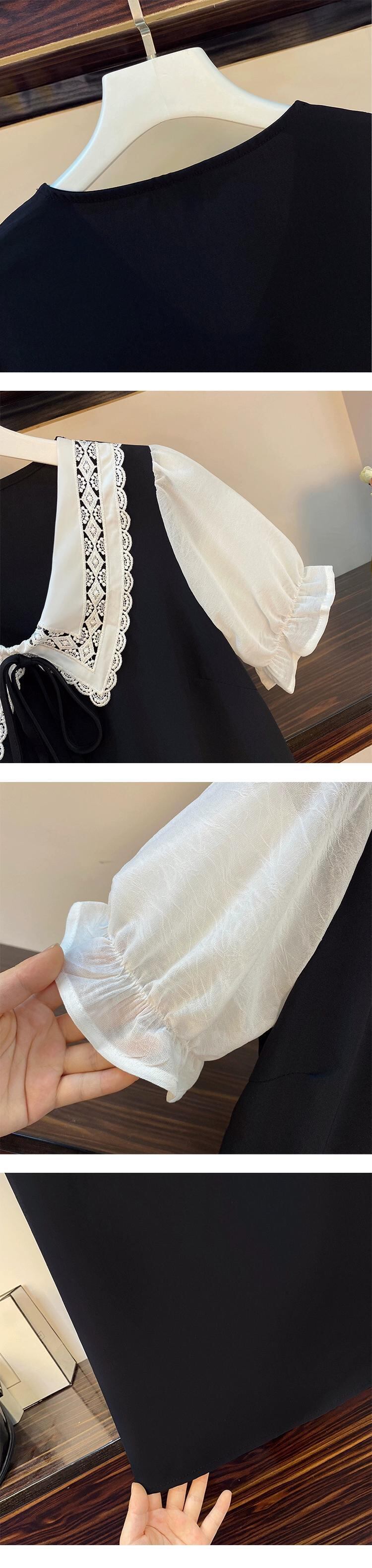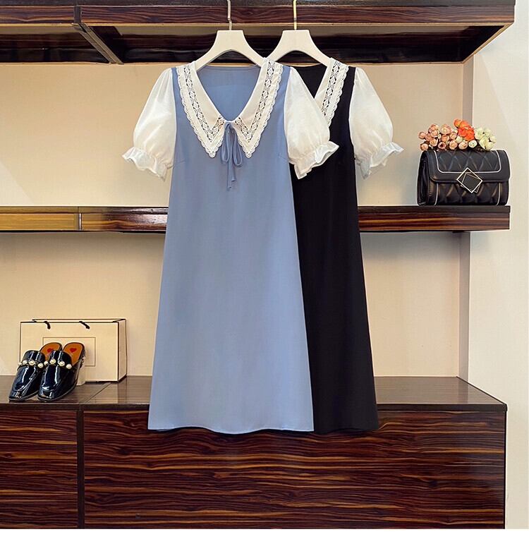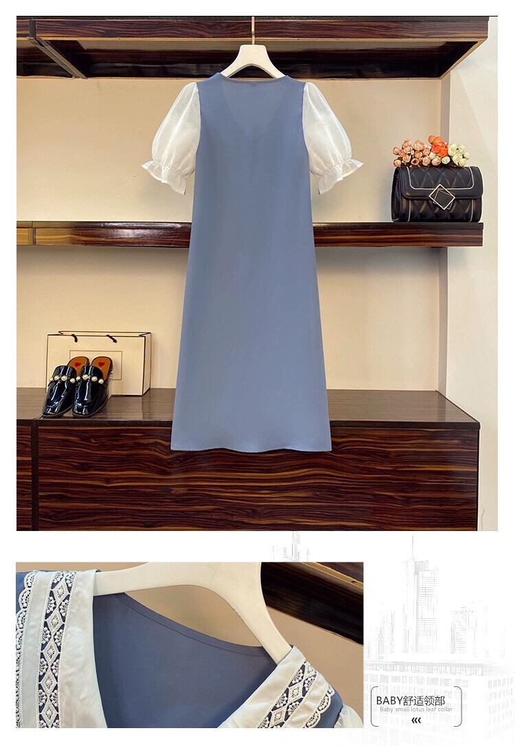 プラスサイズの婦人服 2023 流行の女性の夏の新しいファットシスタードールカラーパフスリーブショー薄いカバー肉 V ネック A ラインドレス 大きめサイズ サマー 夏物 Vネック Aライン 8884153027845621