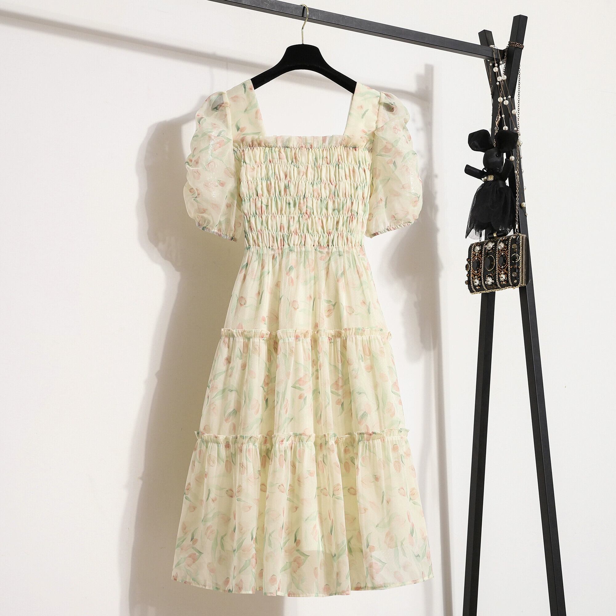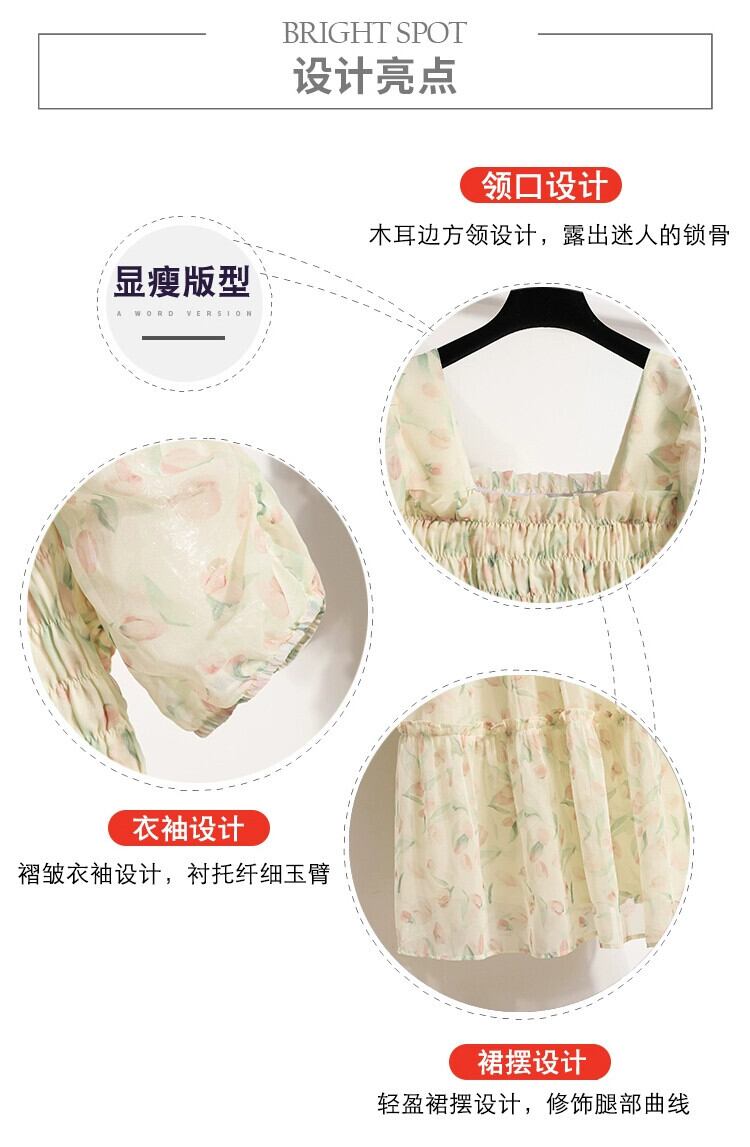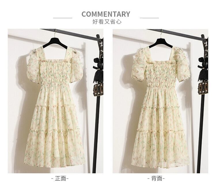 プラスサイズの婦人服 2023 脂肪姉妹夏の新しいファッション気質年齢削減と薄いミドル丈スカート花柄半袖ドレス 大きめサイズ サマー 夏物 8884127704781543
