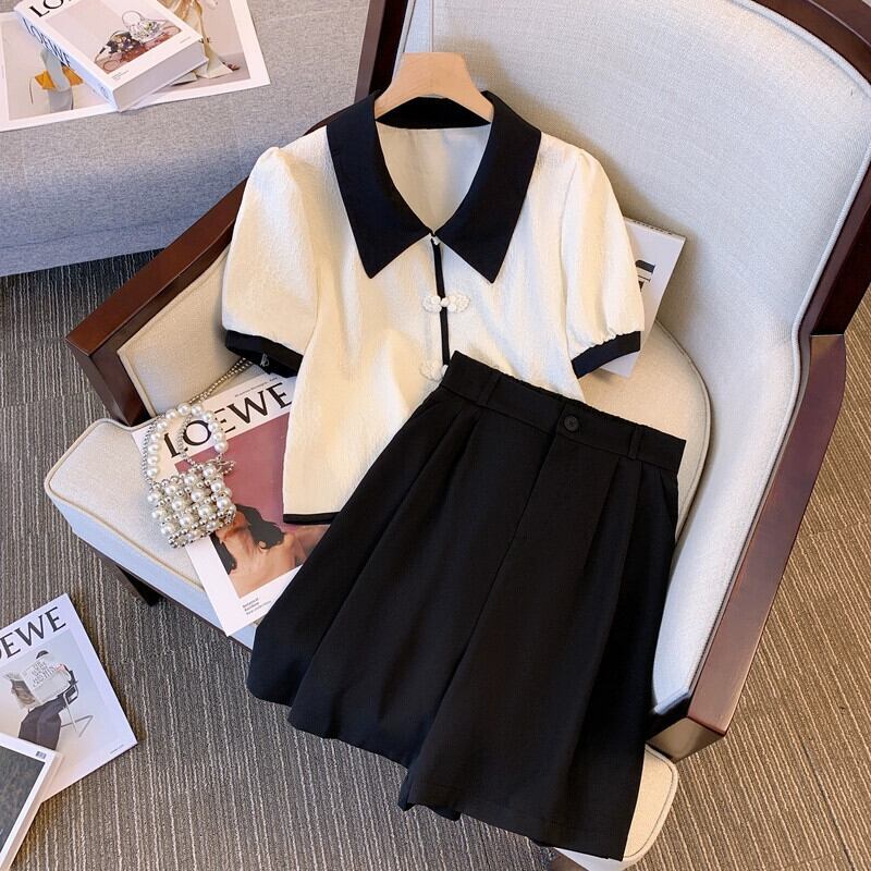プラスサイズの婦人服 2023 夏の新ファットシスターシックショートトップハイウエスト無地カジュアルパンツ 2 点セット ハイウェスト 大きめサイズ サマー 夏物 ソリッドカラー 8884111767322026