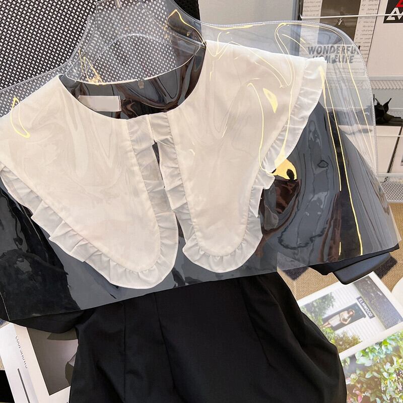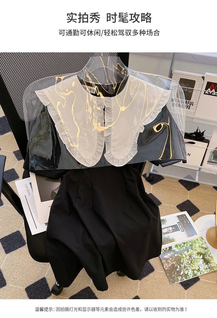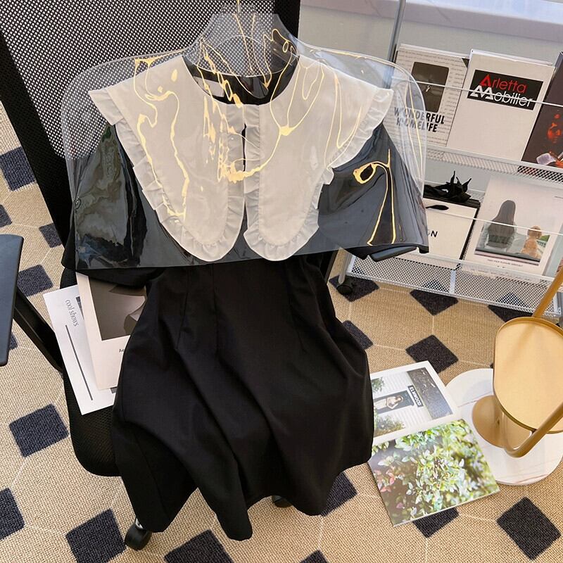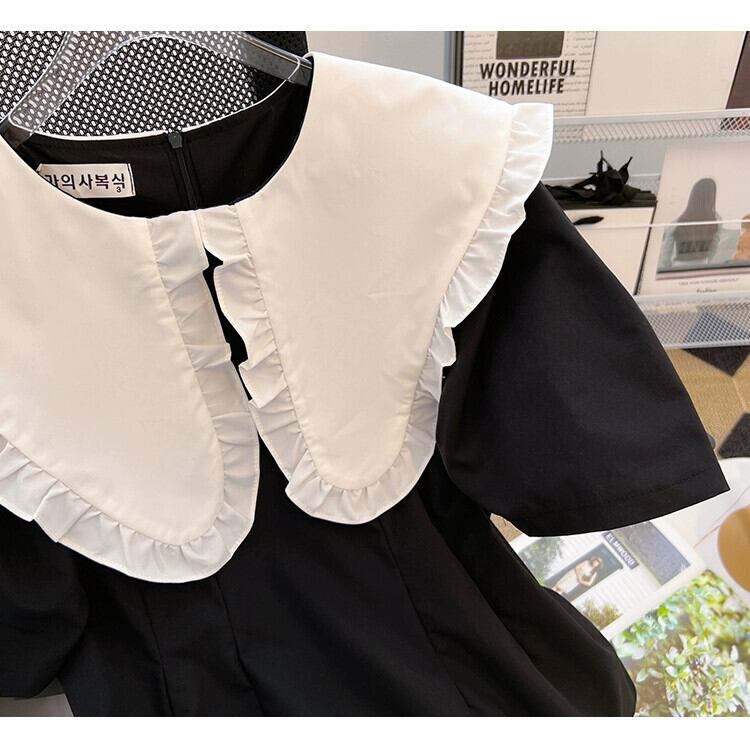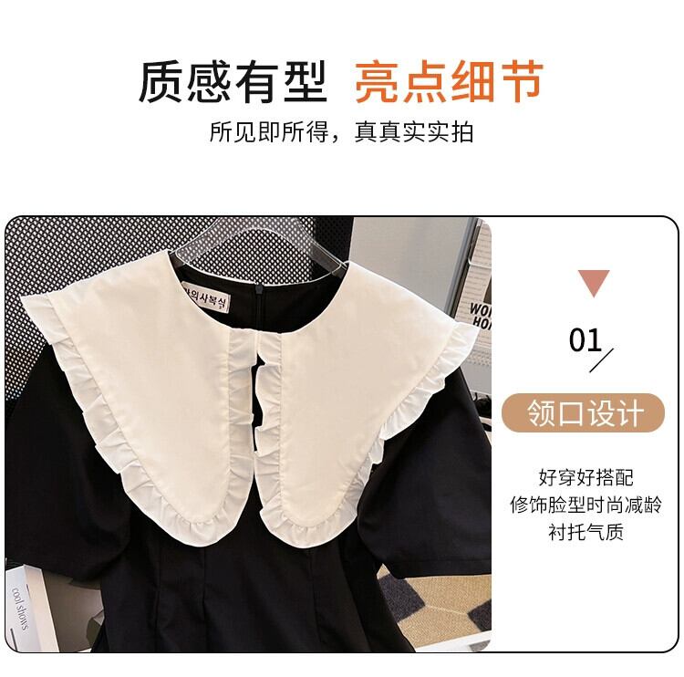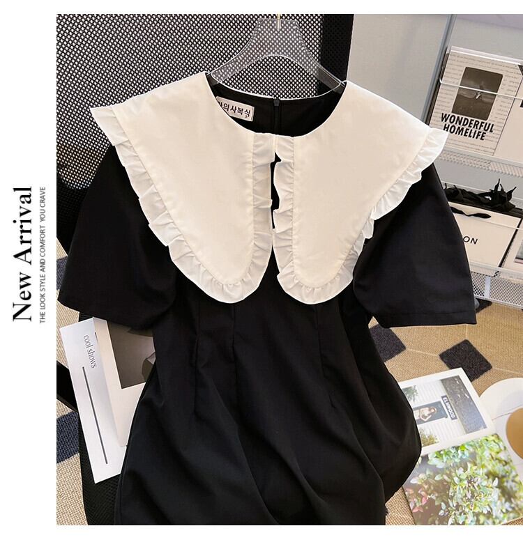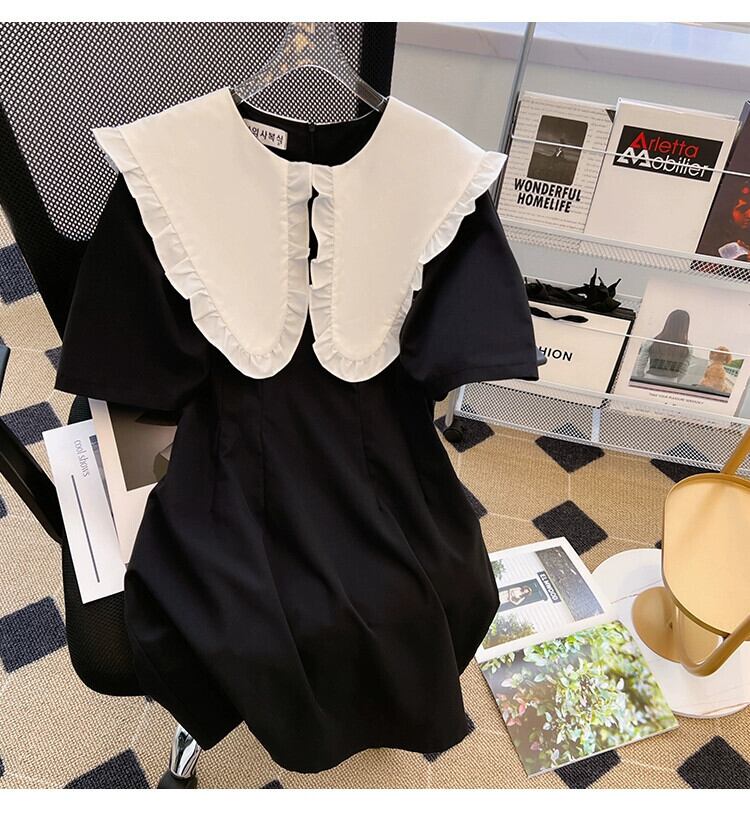 プラスサイズの婦人服 2023 ファットシスター夏新レトロコントラストカラー木の耳サイド大きなラペルヘボン風ドレス 大きめサイズ サマー 夏物 8884138522863453