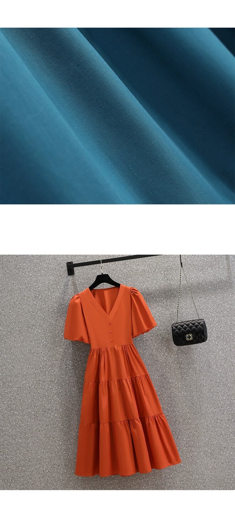 プラスサイズの婦人服 2023 太った妹の夏の新しいフレンチスタイルの年齢を減らす年齢を減らすお腹をカバーする薄いシンプルな気質ドレス女性 大きめサイズ サマー 夏物 8884195721689525