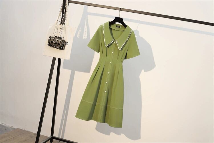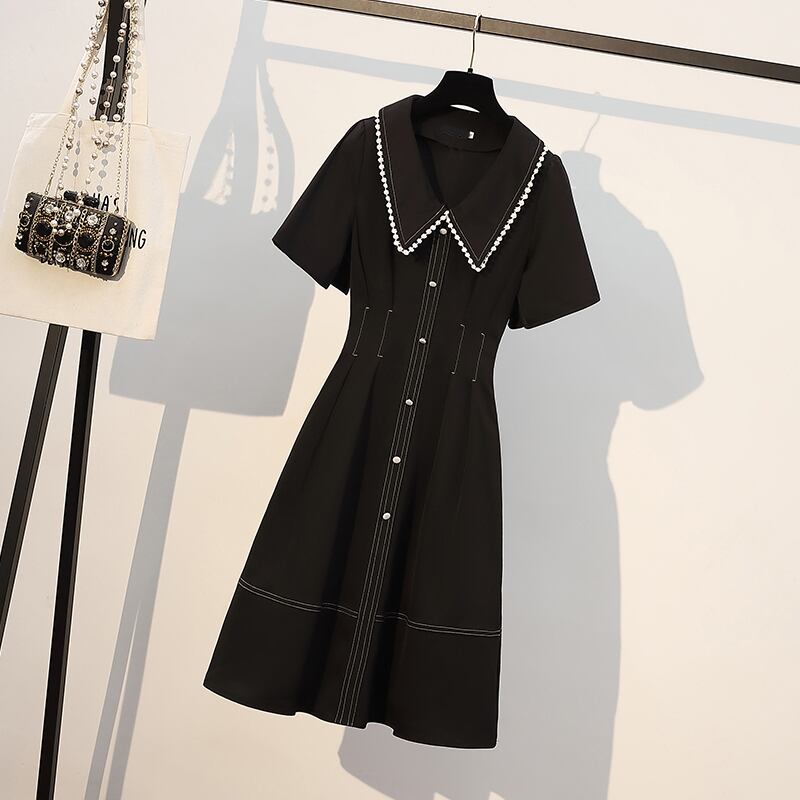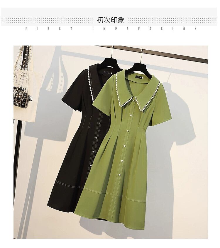 プラスサイズの婦人服 2023 夏の新しい脂肪姉妹フランスの気質人形の襟ウエスト痩身年齢軽減ドレス 大きめサイズ サマー 夏物 8884123187161371
