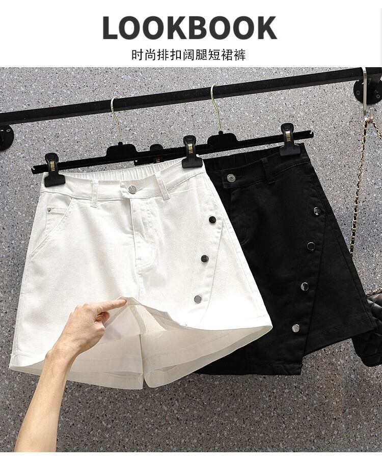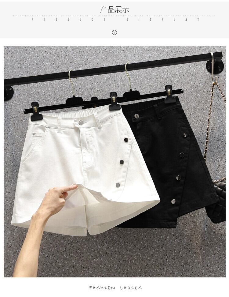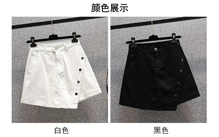 プラスサイズの女性の夏服、太った姉妹、緩い弾性、カジュアル、ハイウエスト、スリムな気質、ジーンズ、ショートパンツ、ワイドレッグパンツ ハイウェスト エラスティック 伸縮 大きめサイズ サマー 夏物 ショーツ ブルマー ワイドパンツ 8884114359001115