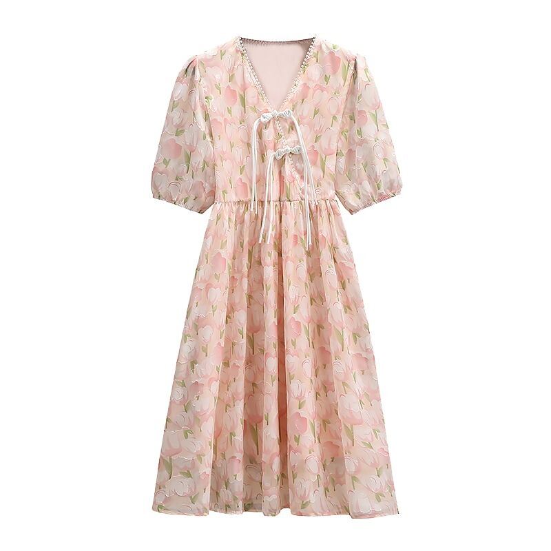 プラスサイズの婦人服 2023 夏服脂肪姉妹新しい中国風のデザインカラーカバー腹部痩身ドレス 大きめサイズ サマー 夏物 8884198456160901