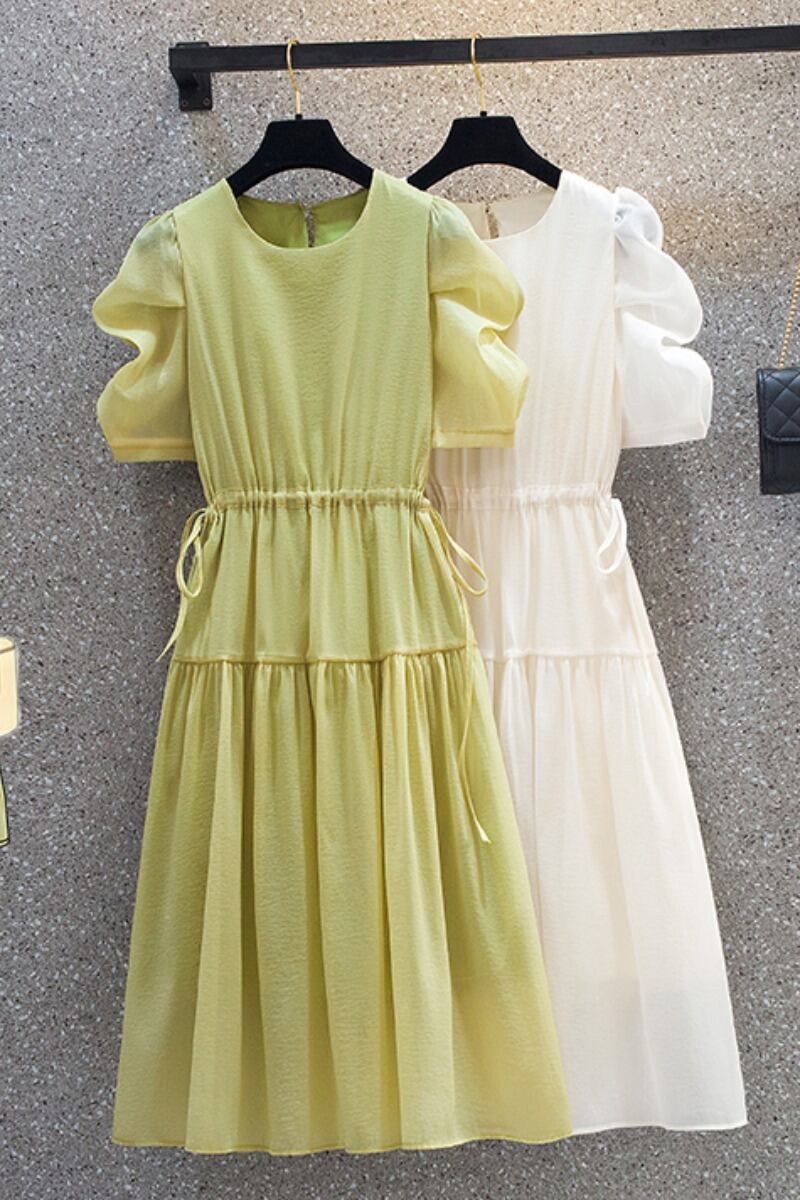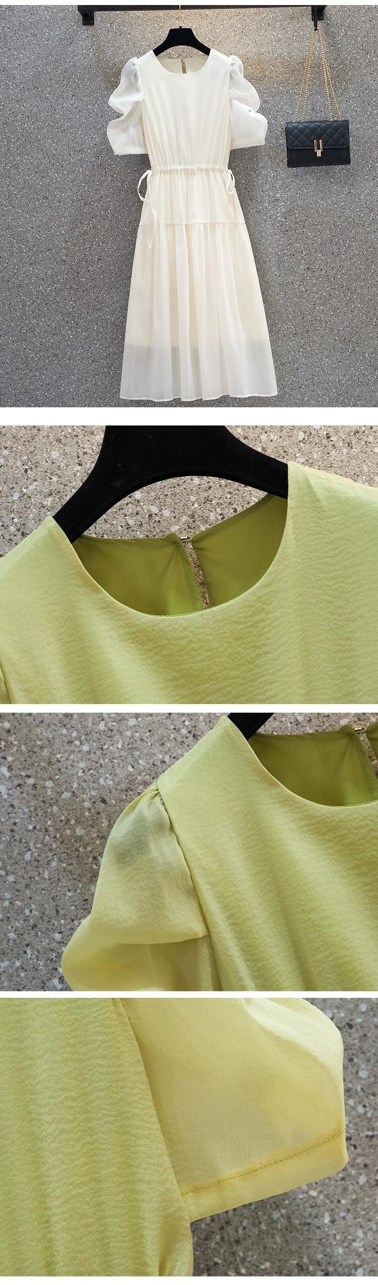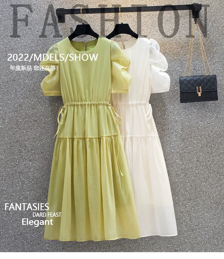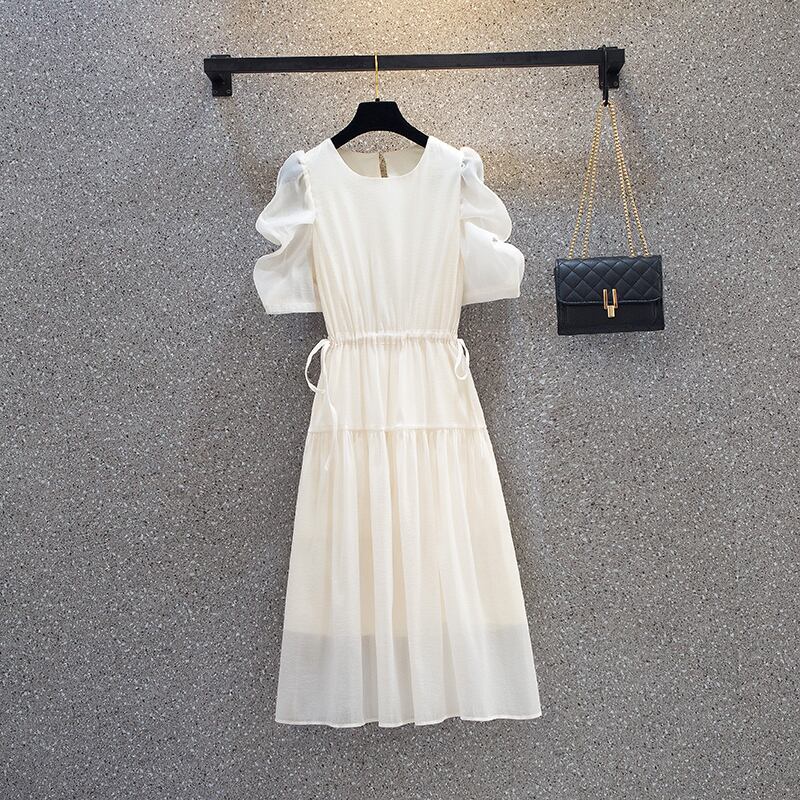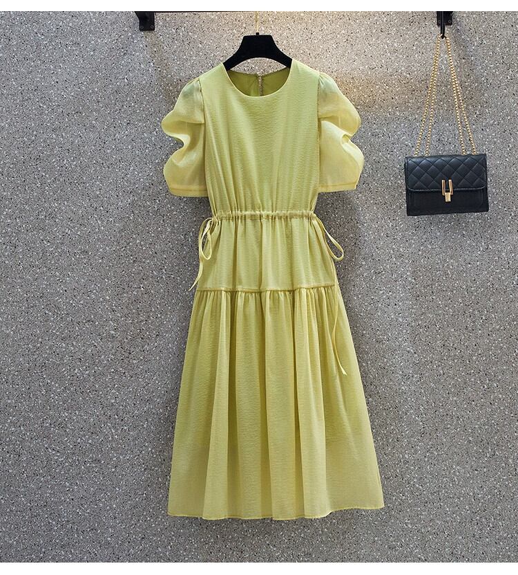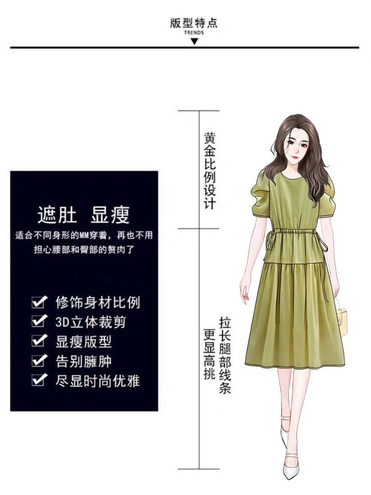 プラスサイズの婦人服 2023 夏の新脂肪姉妹ファッションデザイン巾着ネクタイベルトカバーヒップウエストウエストドレス 大きめサイズ サマー 夏物 ハーネス 8884193336144123