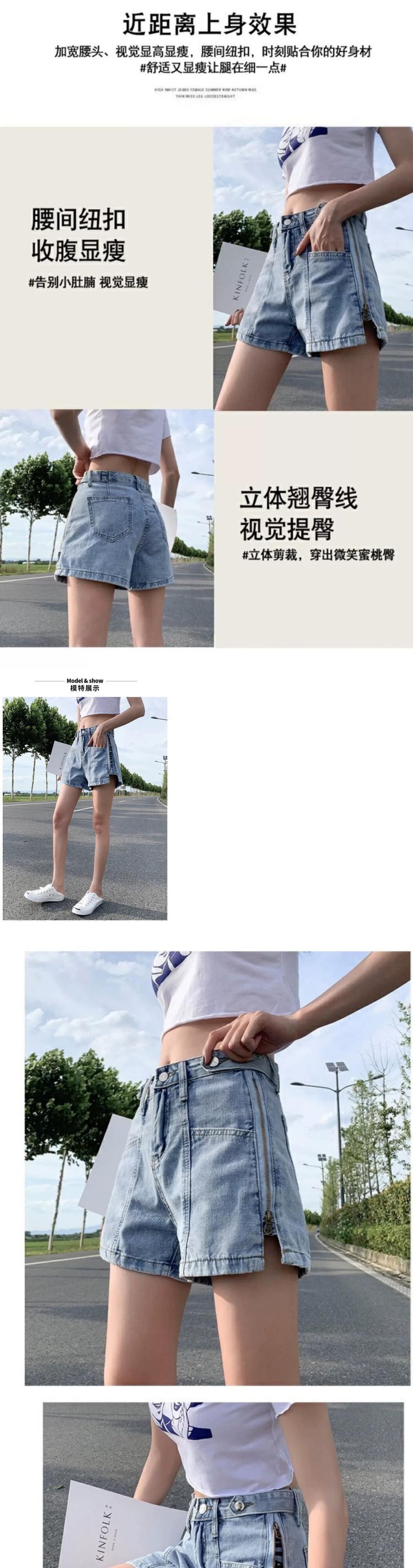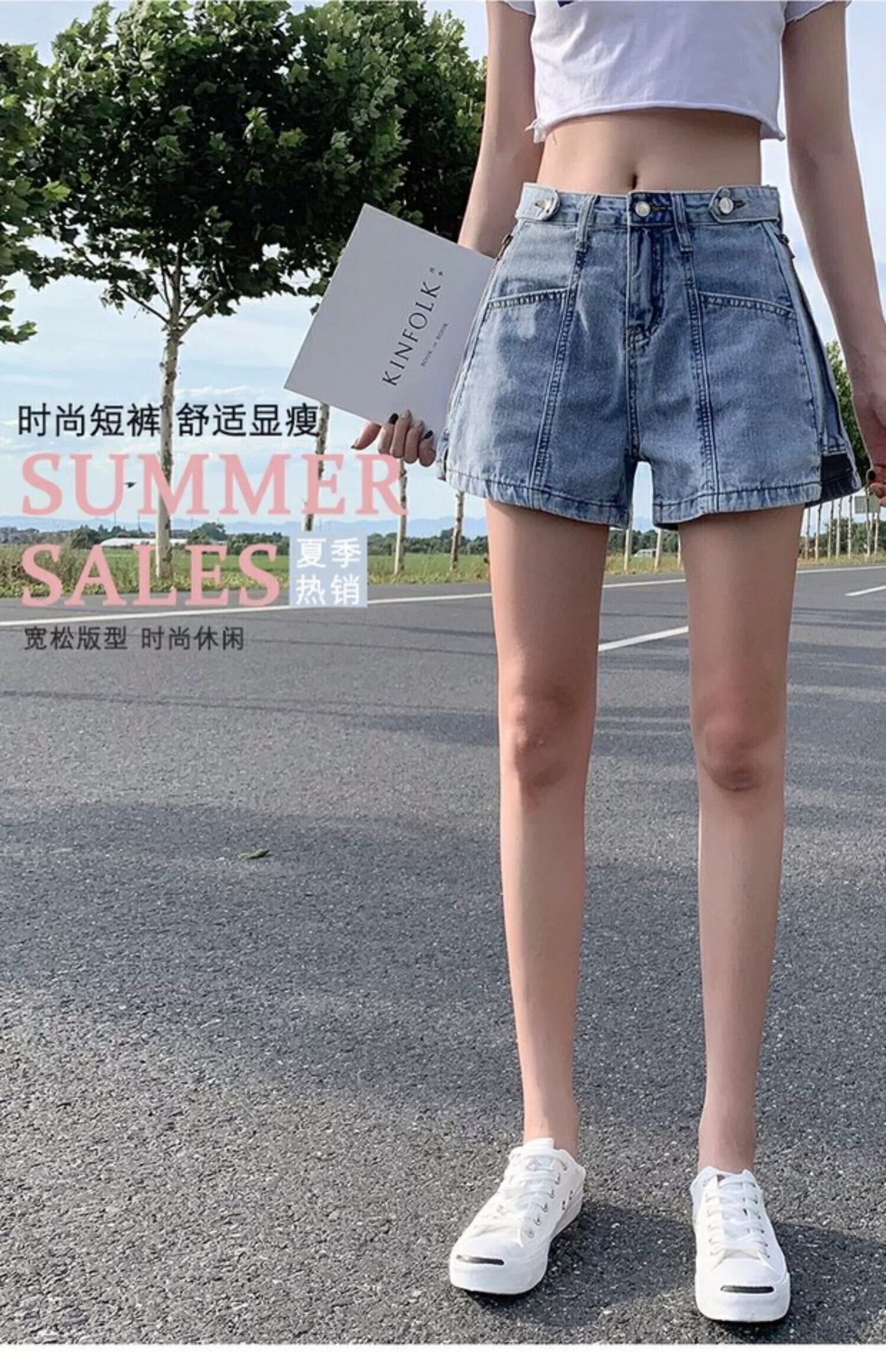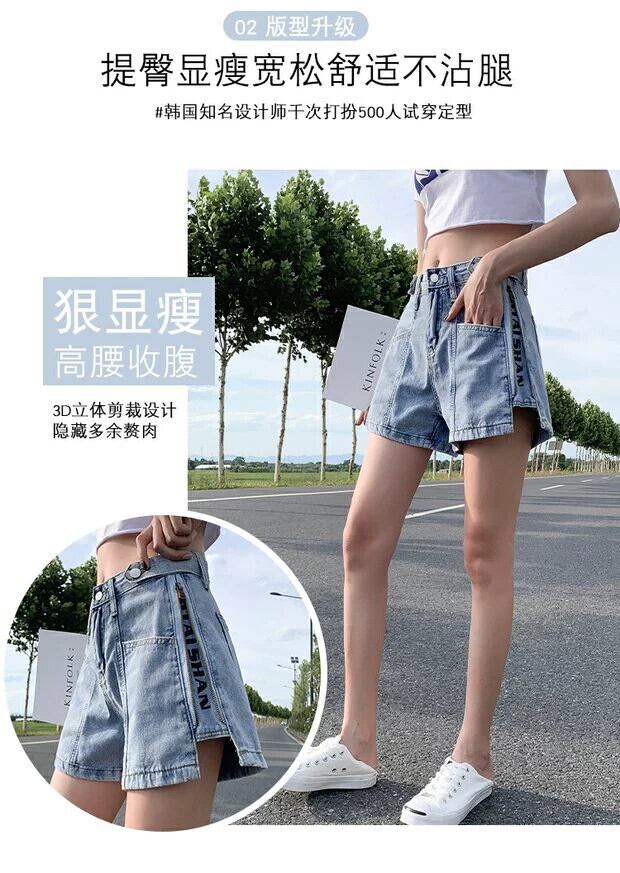 プラスサイズの婦人服 2023 脂肪姉妹夏の新ファッション人格ハイウエストワイドレッグパンツスリムデニムショーツ女性 ハイウェスト 大きめサイズ サマー 夏物 ブルマー ワイドパンツ 8884163525577393