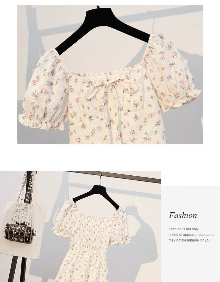 プラスサイズの婦人服 2023 夏服脂肪姉妹新しい気質ウエストカバー腹痩身妖精花柄スカートドレス 大きめサイズ サマー 夏物 8884170724000922