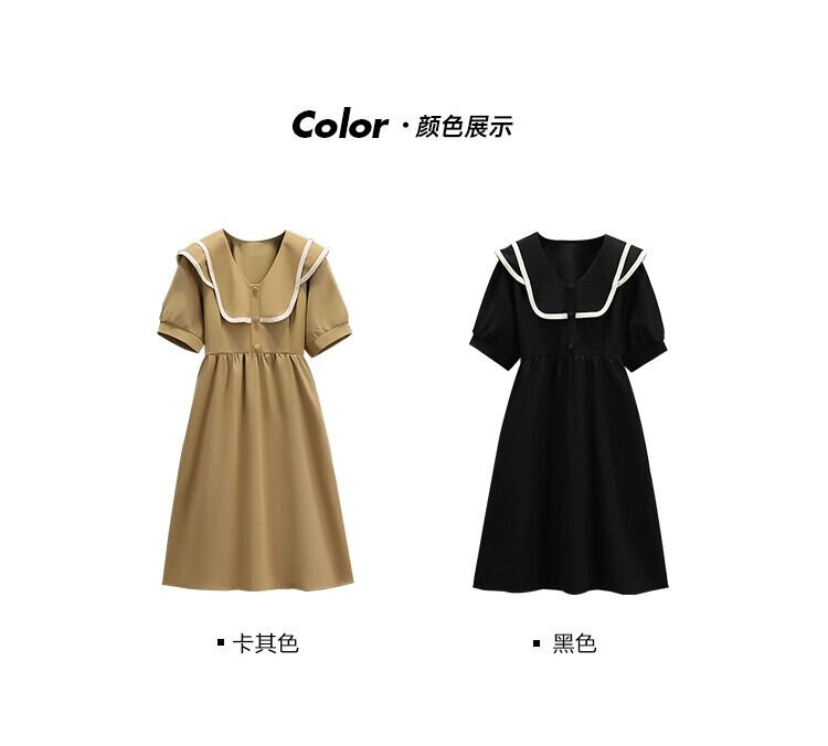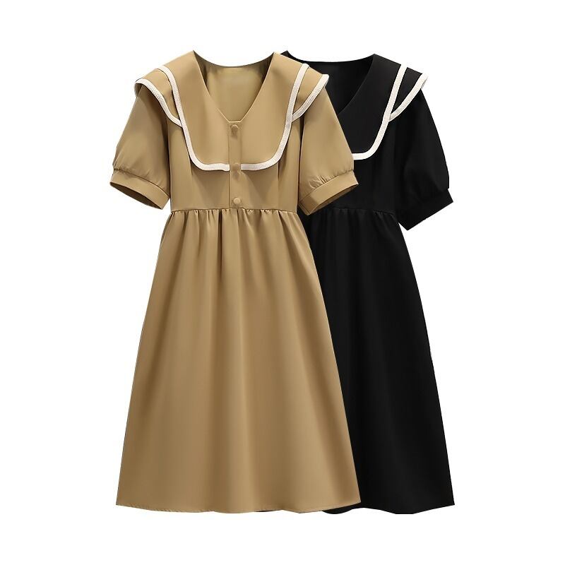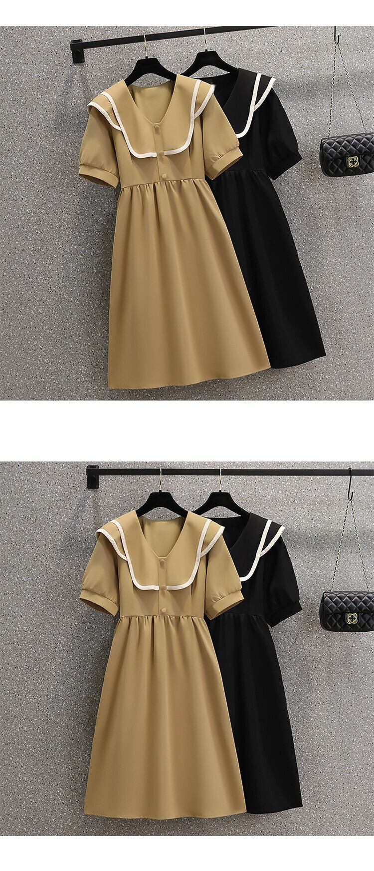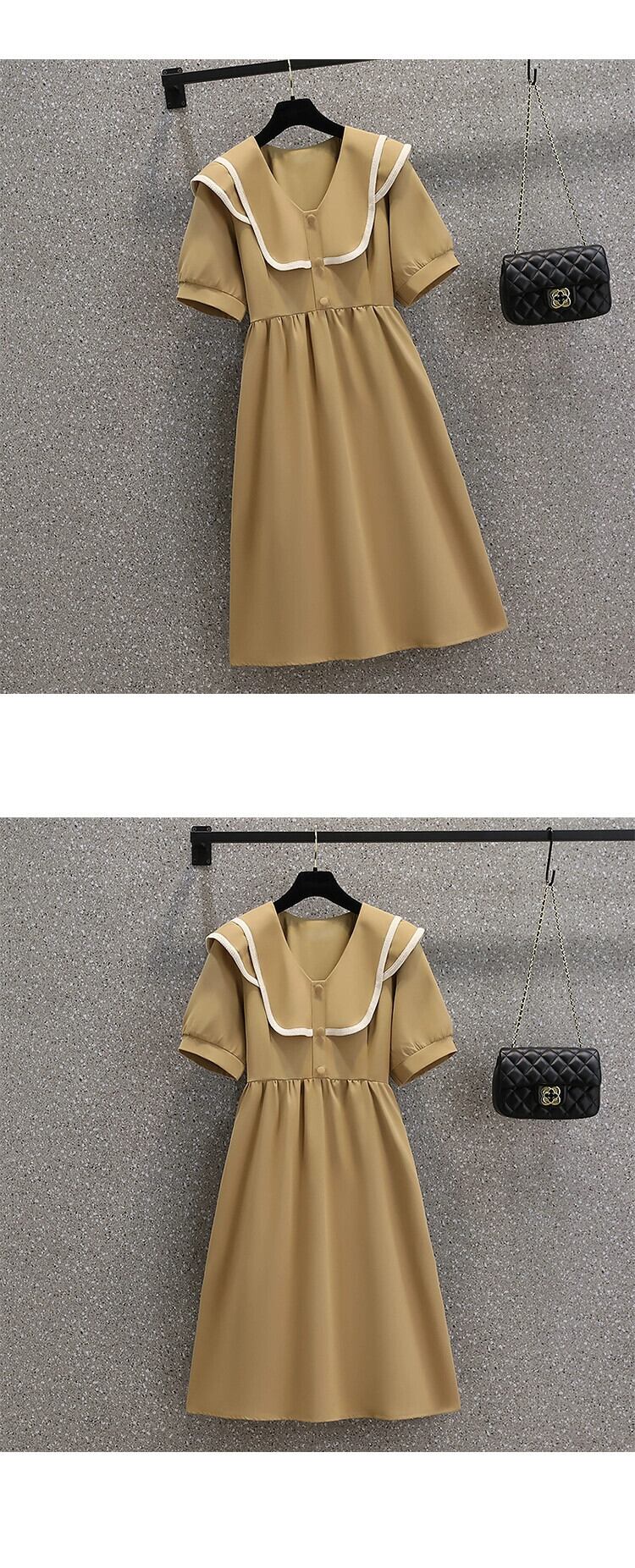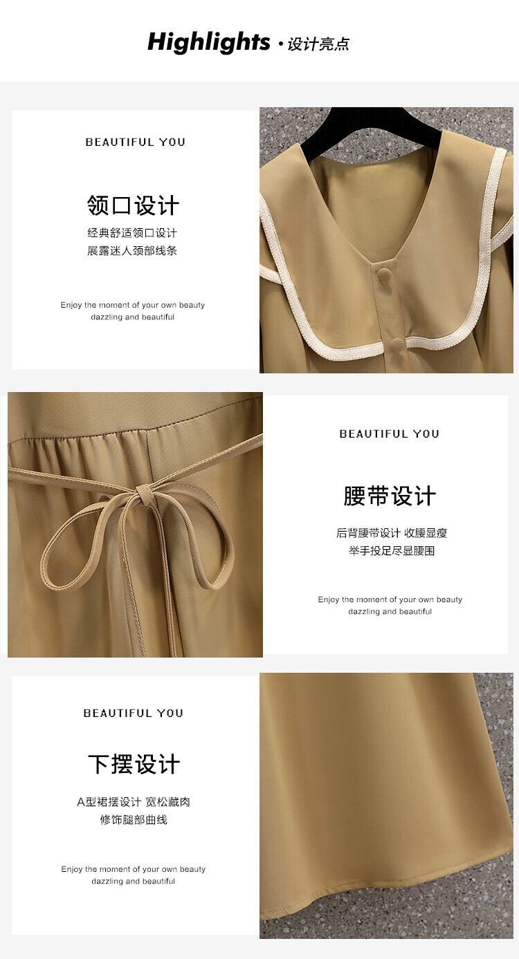 プラスサイズの婦人服 2023 ファットシスター夏の新バージョンオールマッチラペルヘップバーンスタイルの薄い半袖ドレス 大きめサイズ サマー 夏物 8884130027258061