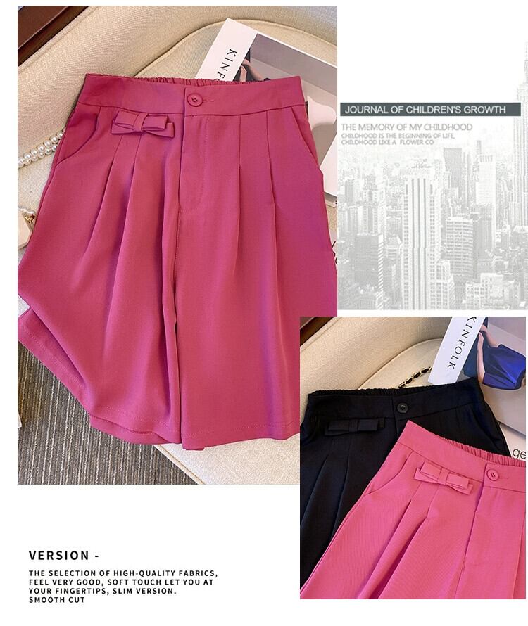 プラスサイズの婦人服 2023 新しい夏服脂肪姉妹ルーズワイド脚に見える薄いハイウエスト弾性ウエストスーツショーツ女性 ハイウェスト エラスティック 伸縮 大きめサイズ サマー 夏物 ブルマー ワイドレッグ ワイドパンツ 8884119022825889