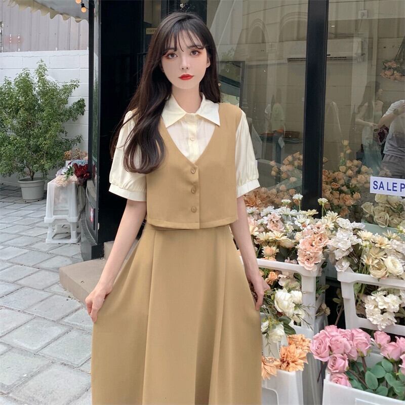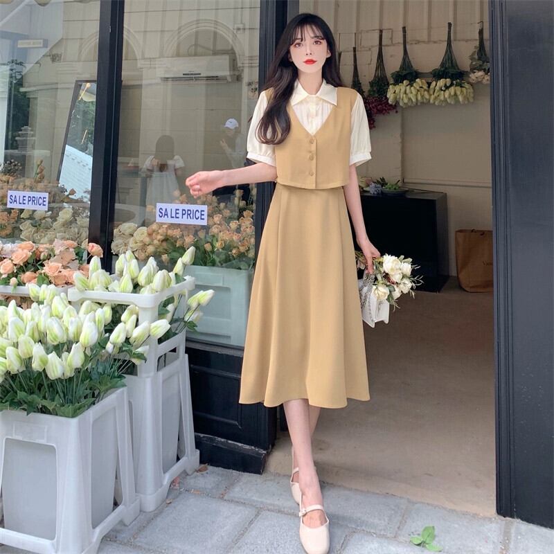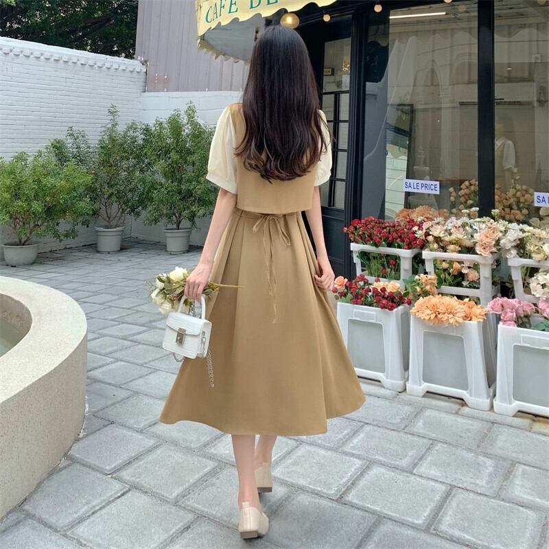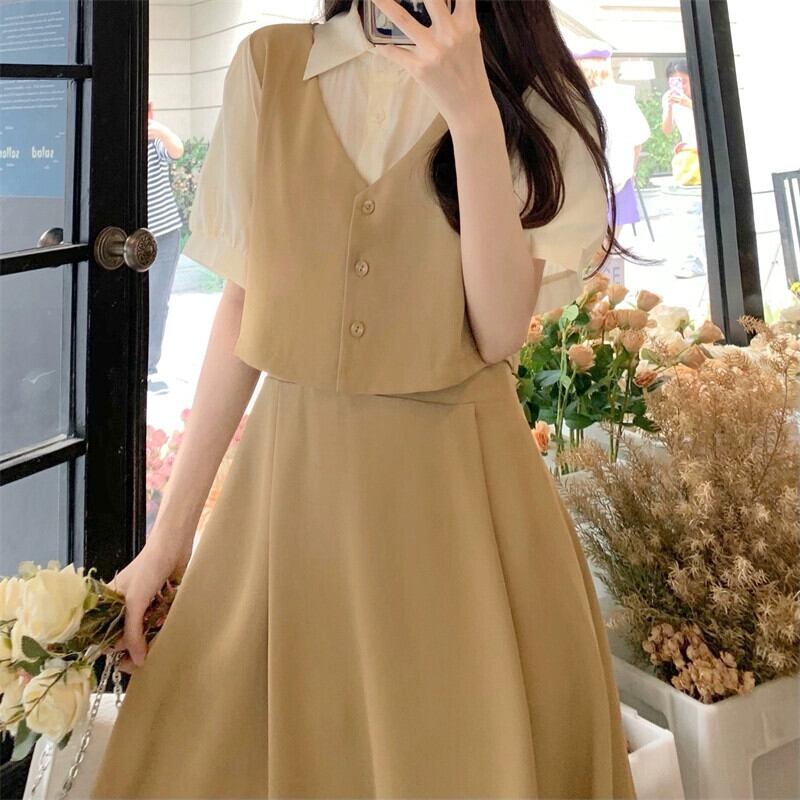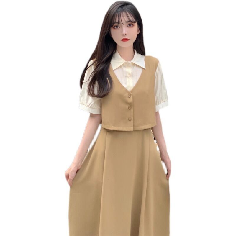 プラスサイズの婦人服 2023 流行の女性の夏の新しいファットシスターフレンチ半袖シャツ襟デザイン偽ツーピースドレス女性 大きめサイズ サマー 夏物 8884157493086550