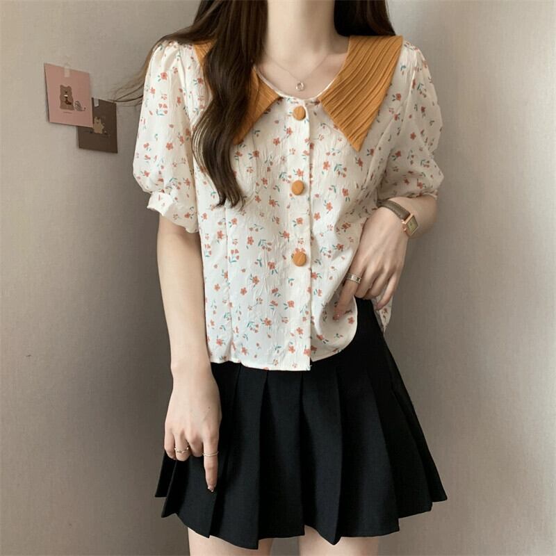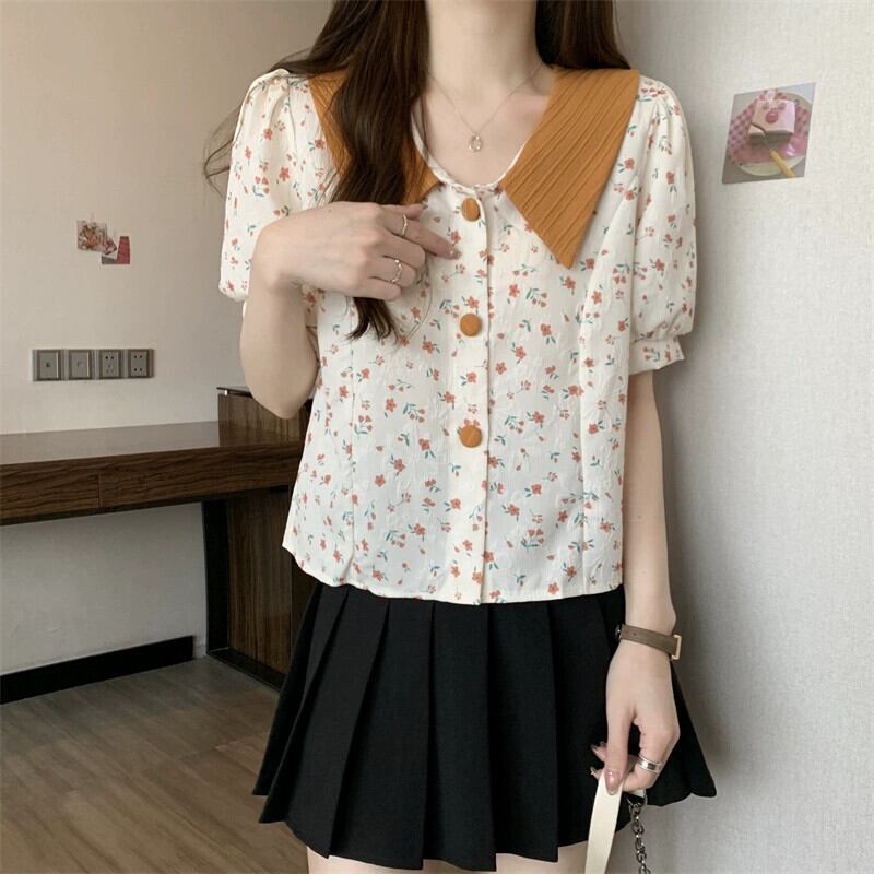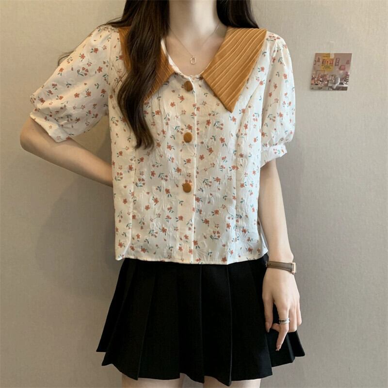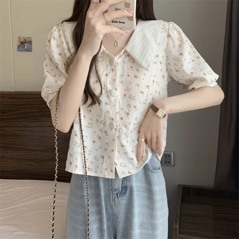 プラスサイズの婦人服 2023 夏の新脂肪姉妹オールマッチスタイル気質人形の襟ファッションシックなトップ女性 大きめサイズ サマー 夏物 8884117353532499