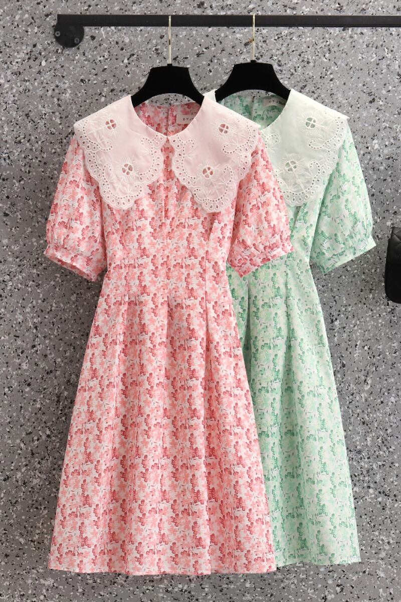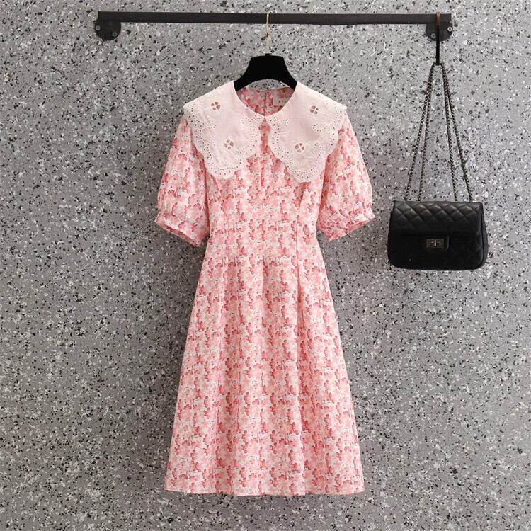 プラスサイズの婦人服 2023 夏の新しい脂肪姉妹年齢を減らす人形の襟花柄オールマッチフレンチウエストドレス 大きめサイズ サマー 夏物 8884163155910249