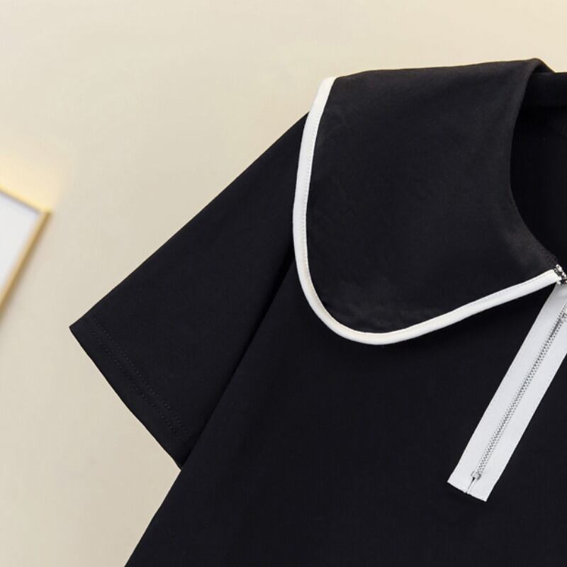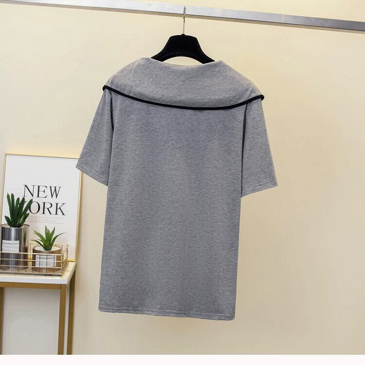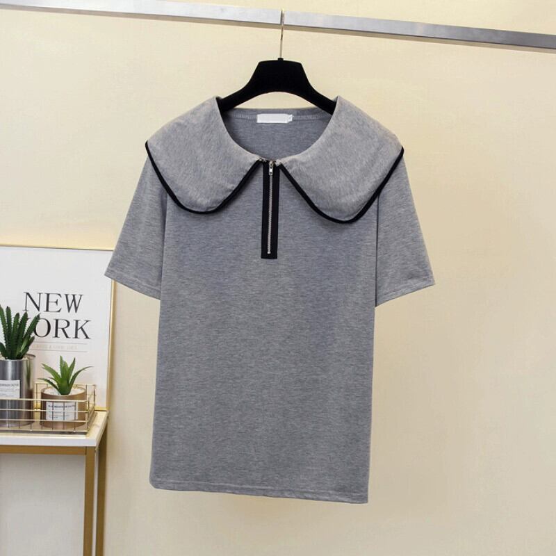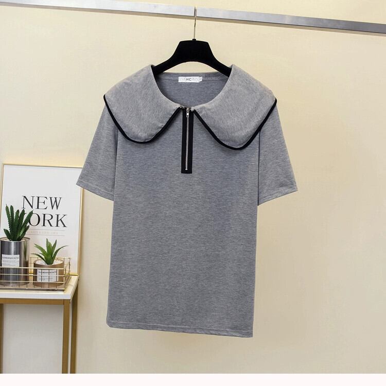 プラスサイズの婦人服 2023 夏の新脂肪姉妹気質ファッションオールマッチスリム人形の襟年齢削減 Tシャツ女性 大きめサイズ サマー 夏物 8884115079068377