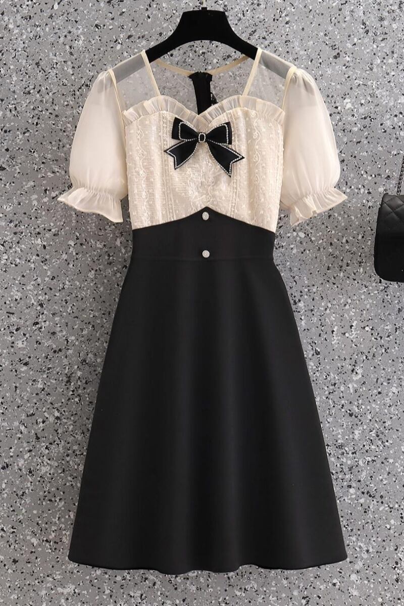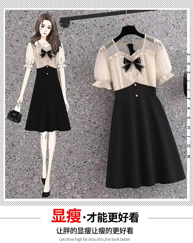 プラスサイズの婦人服 2023 脂肪姉妹夏の新しいファッション気質スリムウエスト V ネックちょう結びドレス リボン 大きめサイズ サマー 夏物 Vネック 8884152012066411