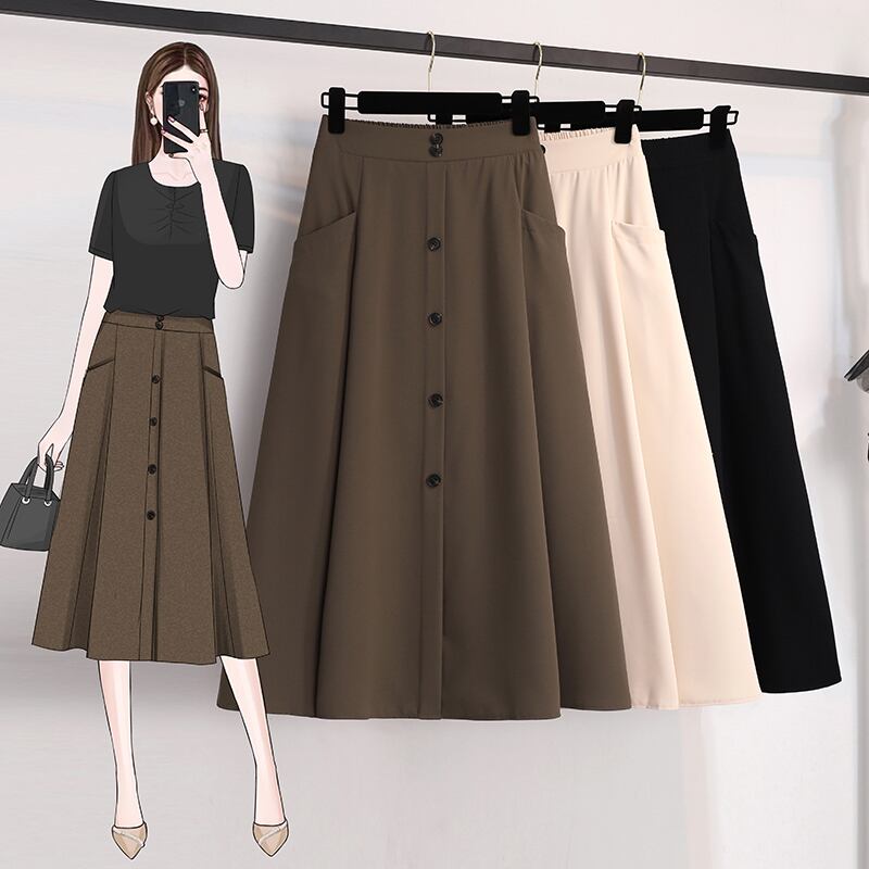 プラスサイズの婦人服 2023 夏の新脂肪姉妹ファッションバージョン無地ハイウエストヒップカバー気質スカート女性 ハイウェスト 大きめサイズ サマー 夏物 ソリッドカラー 8884159130024410