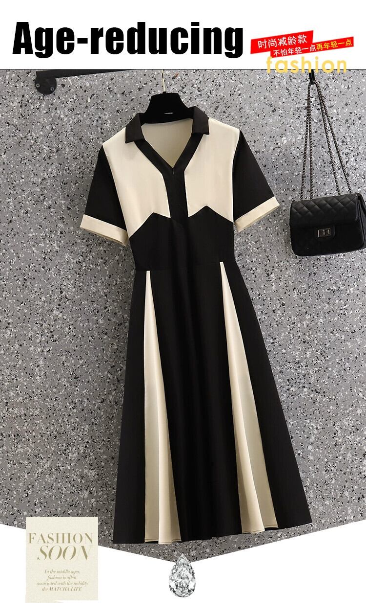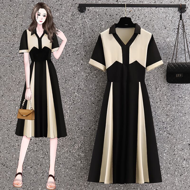 プラスサイズの婦人服 2023 夏の新脂肪姉妹ファッション気質年齢を減らす緩いカラーマッチングウエストドレス女性 大きめサイズ サマー 夏物 8884167419801215