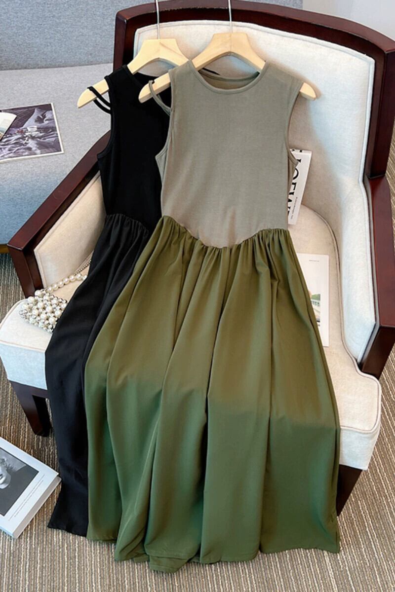 プラスサイズの婦人服 2023 夏の新しい脂肪姉妹偽ツーピースウエストスタイル気質ノースリーブベストドレス 大きめサイズ サマー 夏物 8884168906282685