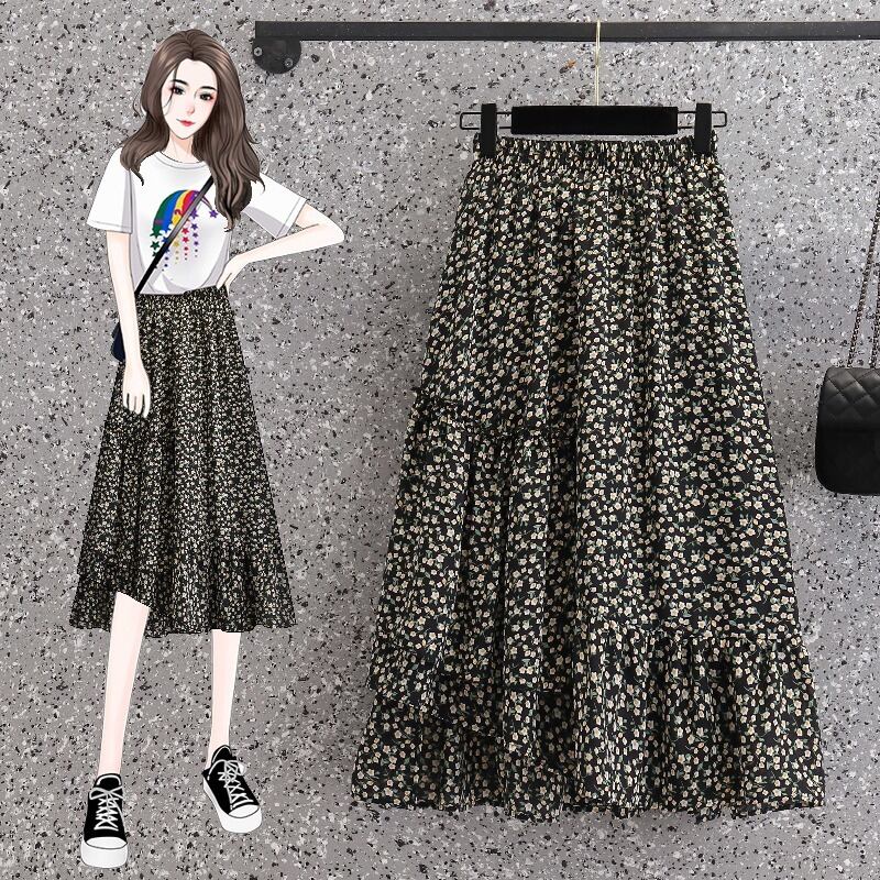 プラスサイズの婦人服 2023 流行の女性の夏の新しいスタイルファットシスターファッショナブルなハイウエスト花柄フレンチスタイル不規則人格スカート ハイウェスト 大きめサイズ サマー 夏物 8884185654183027
