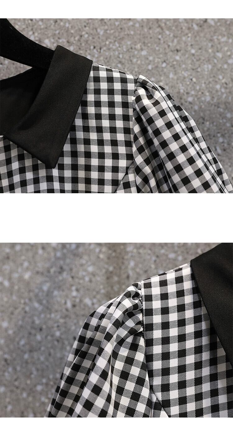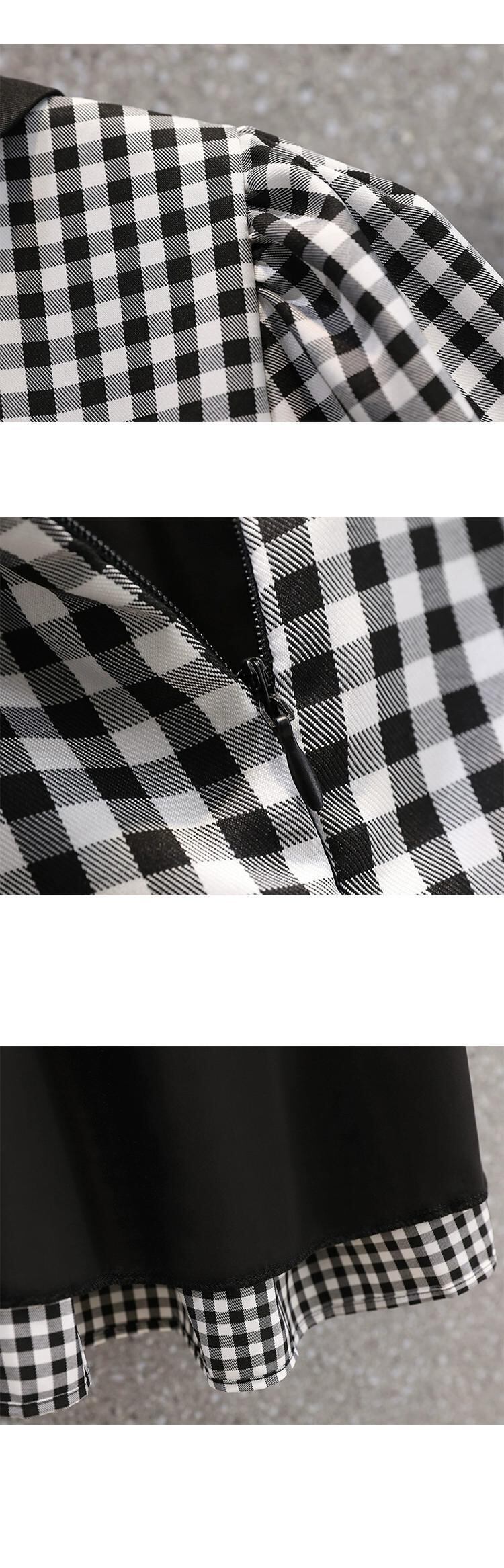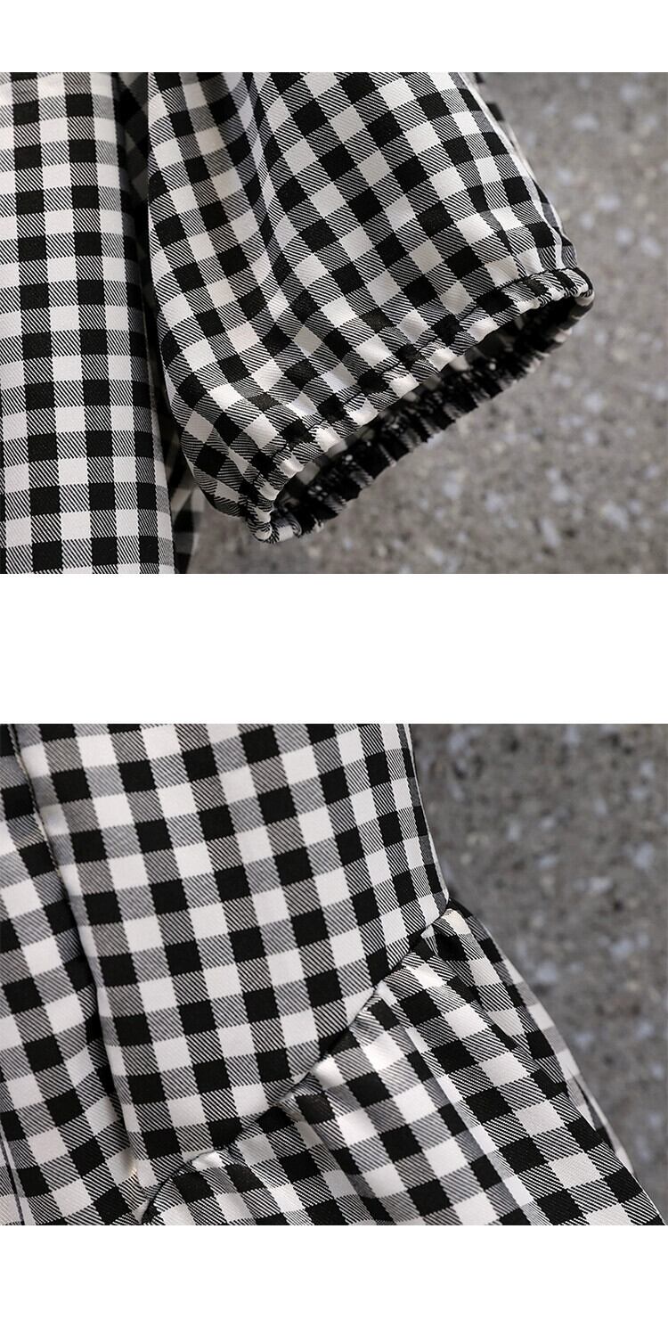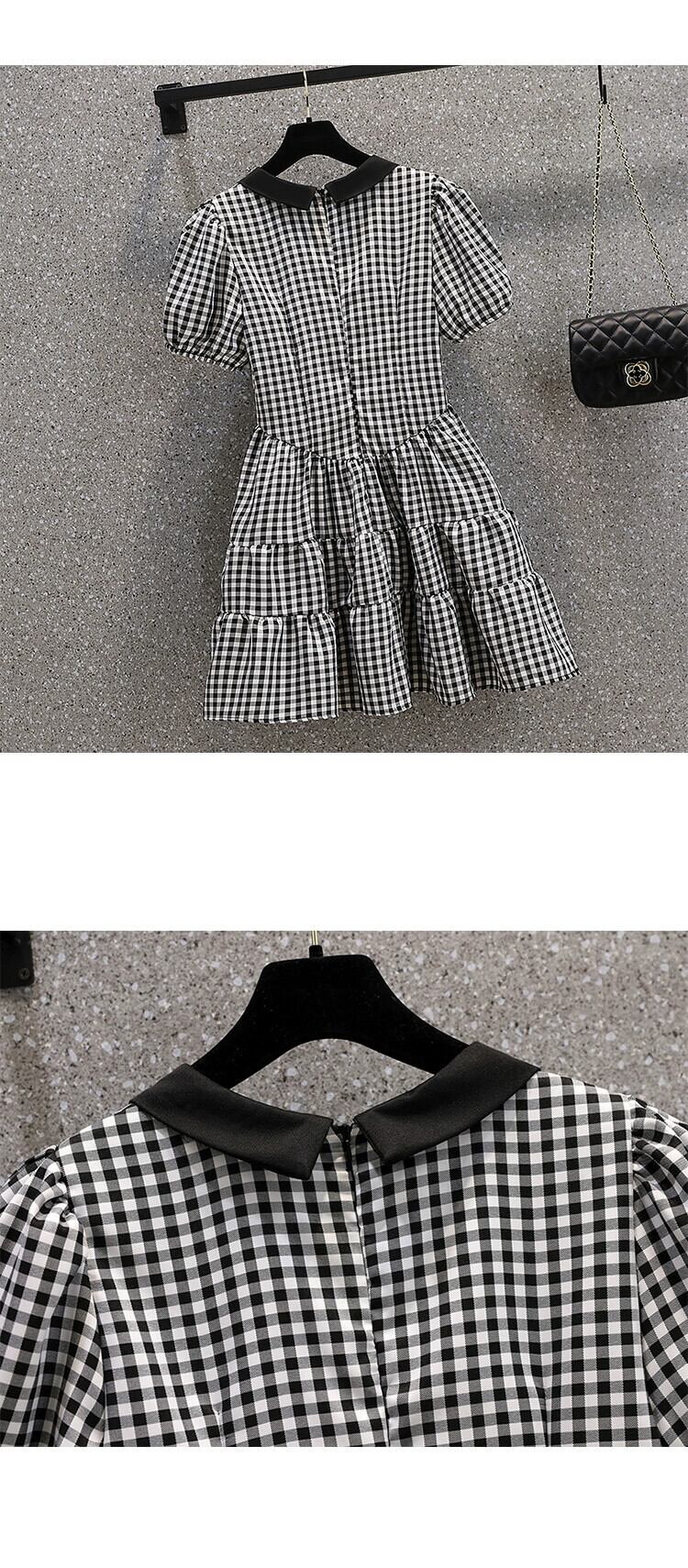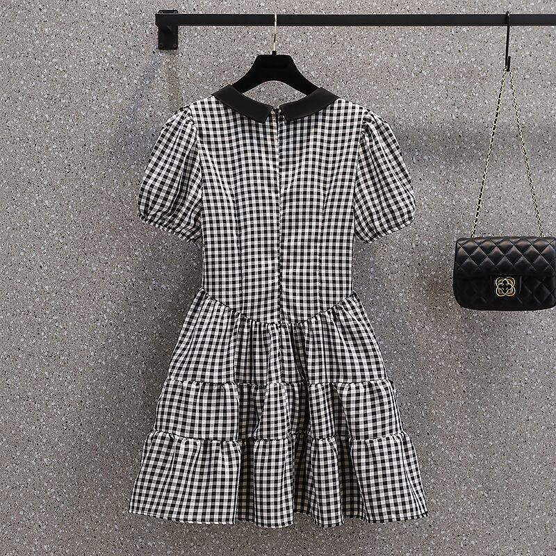プラスサイズの婦人服 2023 太った妹の夏の新しいフランスのデザイン感の薄い黒と白のチェック柄ふわふわドレス ホワイト ブラック 大きめサイズ サマー 夏物 8884186250364578