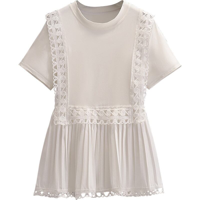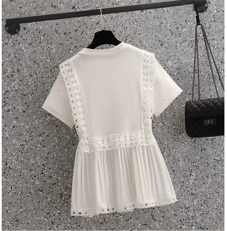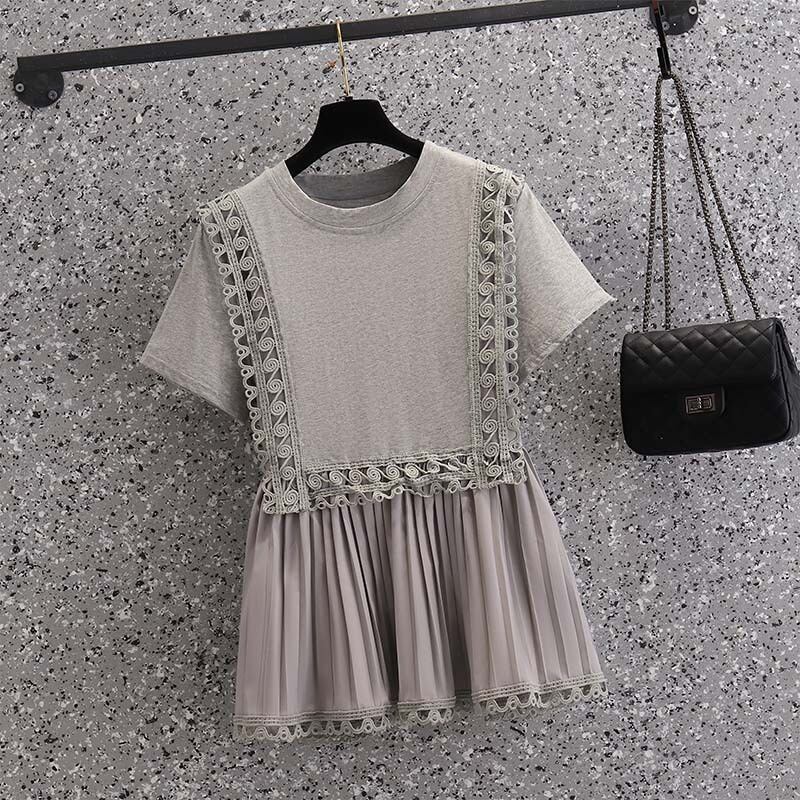 プラスサイズの婦人服 2023 夏の新脂肪姉妹 eign スタイル年齢削減ルーズスリムレーススプライシングファッショントップ 大きめサイズ サマー 夏物 8884167073018560