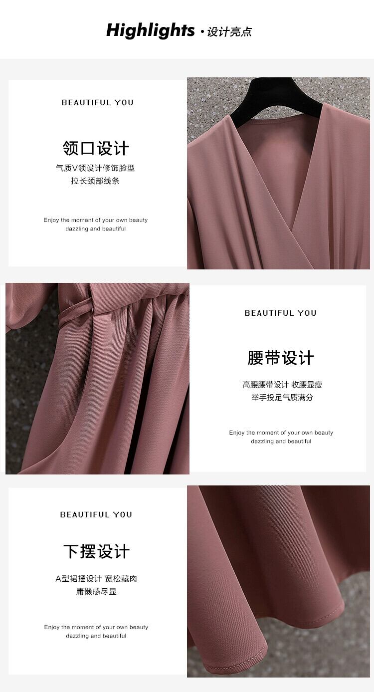 プラスサイズの婦人服 2023 脂肪姉妹夏の新スタイル eign スタイルのファッションルーズスリム V ネック気質ドレス女性 大きめサイズ サマー 夏物 Vネック 8884130474280164
