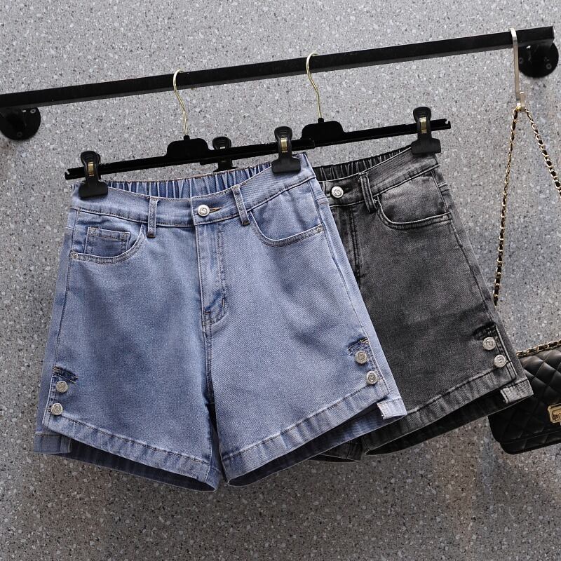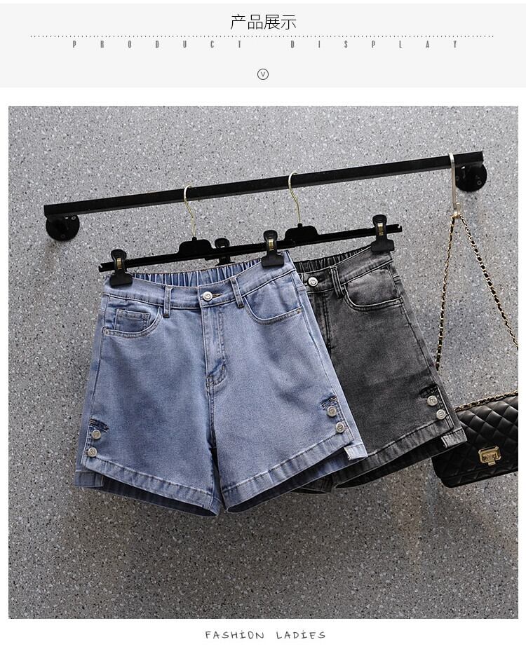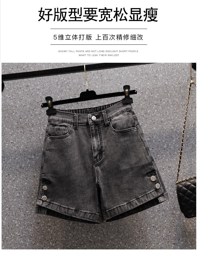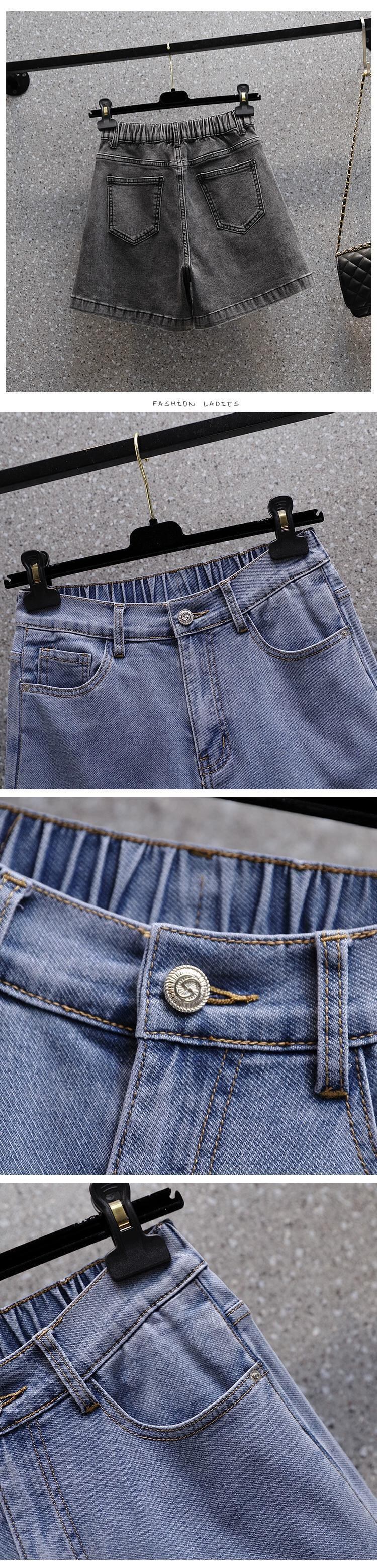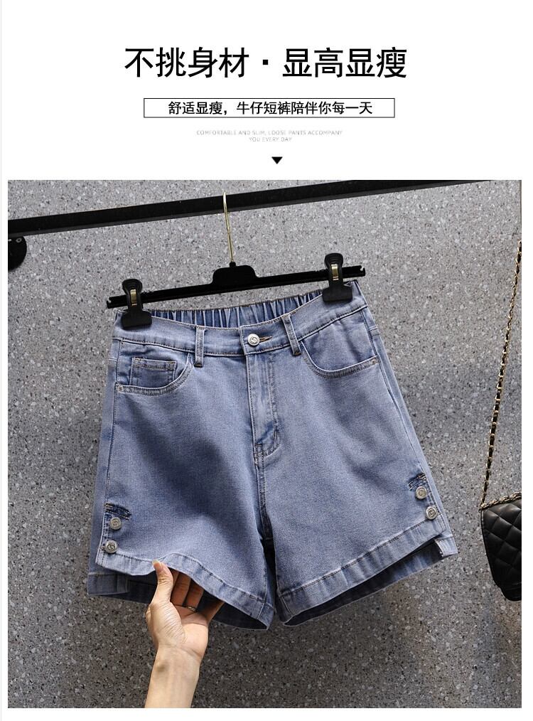 プラスサイズの婦人服 2023 夏の新脂肪姉妹スタイルカジュアルルーズ弾性ハイウエストファッションデニムショートパンツ ハイウェスト エラスティック 伸縮 大きめサイズ サマー 夏物 ショーツ ブルマー 8884118743565502