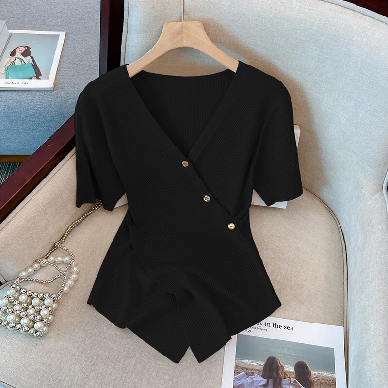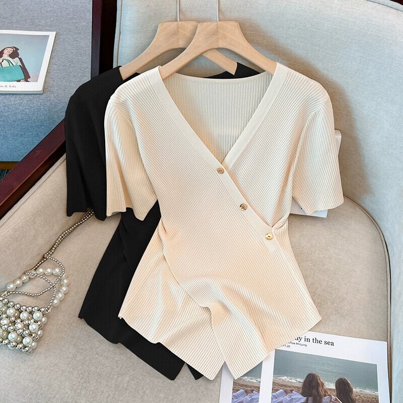 プラスサイズの女性の夏服、太った姉妹のデザイン、不規則なアイスシルクが肉を覆い、薄くてシックなトップス、お腹を覆うTシャツ 大きめサイズ サマー 夏物 8884151717820821
