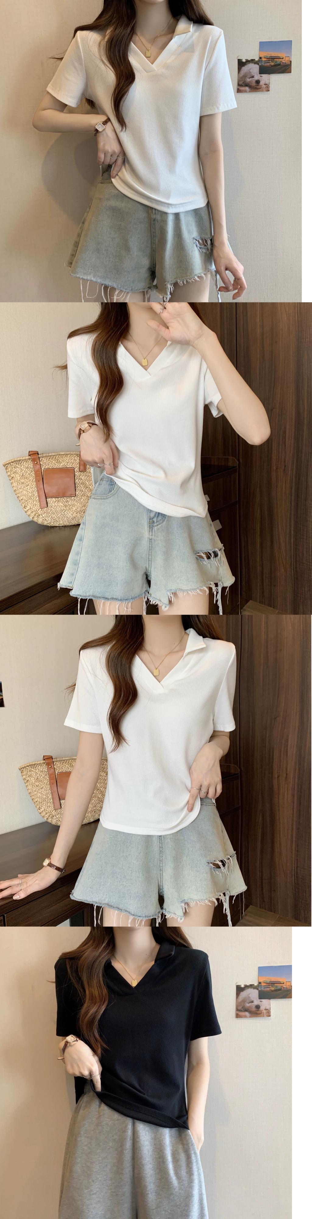 大きいサイズの婦人服 2023 ファットシスター夏新デザインの凹凸感肩薄手半袖 T シャツ 大きめサイズ サマー 夏物 Tシャツ 8884126959795494
