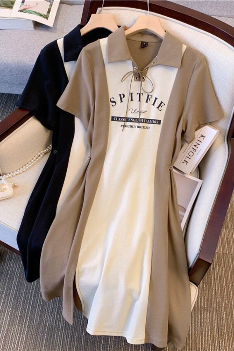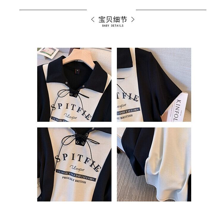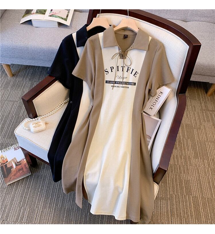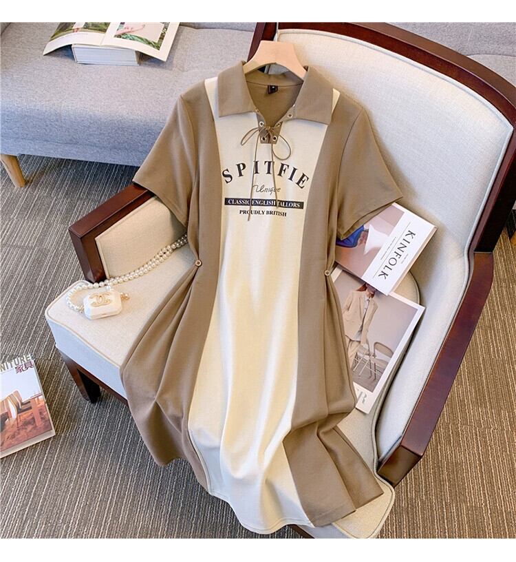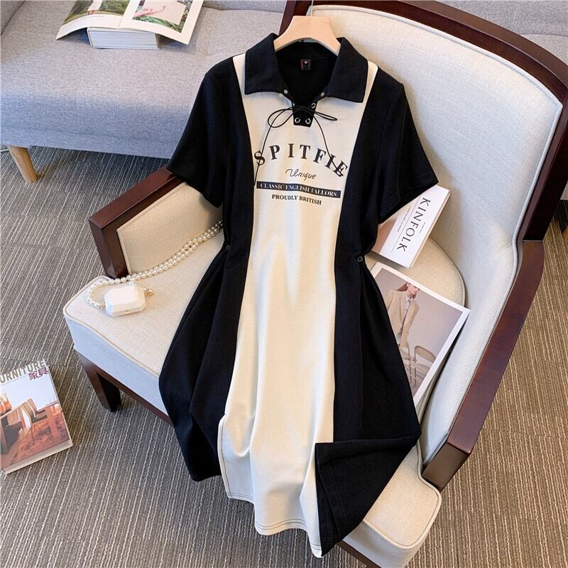 プラスサイズの婦人服 2023 流行の女性の夏の新しいファットシスターファッションステッチプリントちょう結びラペルウエストドレス リボン 大きめサイズ サマー 夏物 8884137964989969