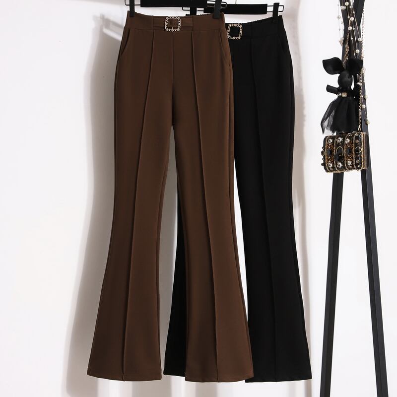 プラスサイズの婦人服 2023 脂肪姉妹夏の新バージョンスリム背の高い弾性ワイドレッグパンツスーツパンツフレアパンツ女性 レッド エラスティック 伸縮 大きめサイズ サマー 夏物 ワイドパンツ 8884139809383629