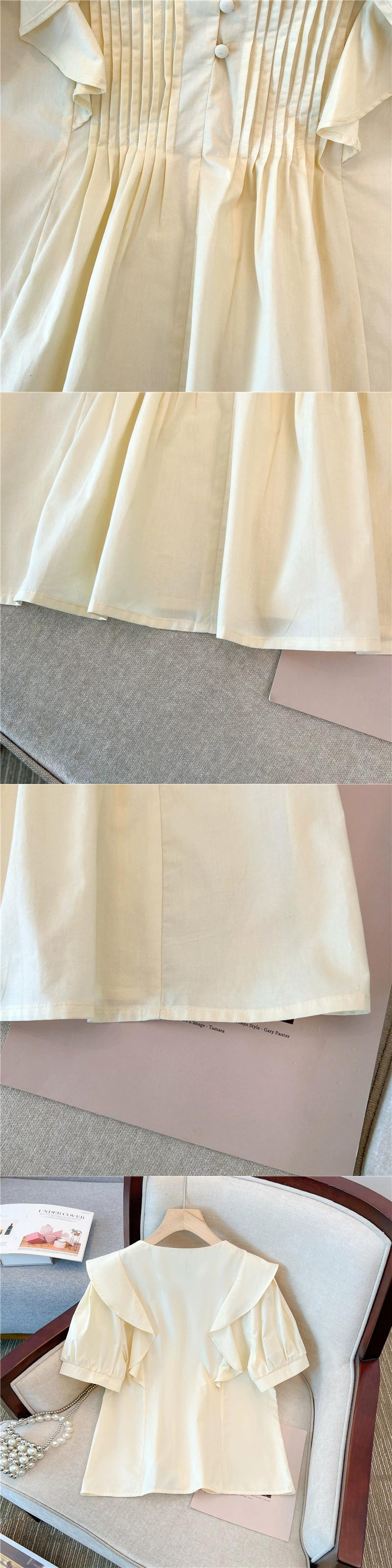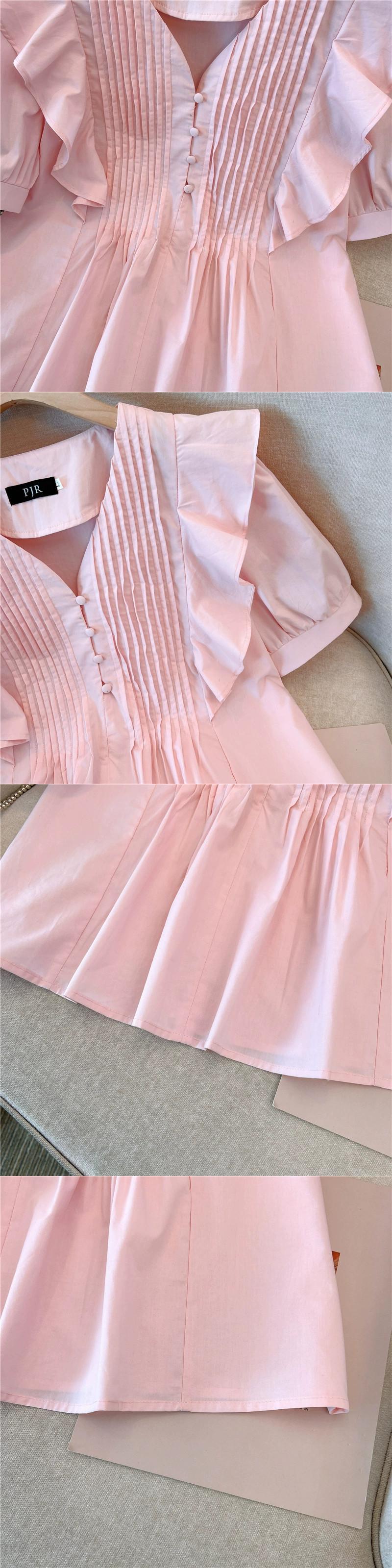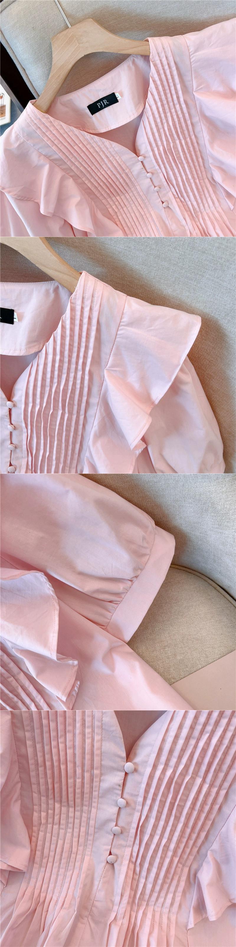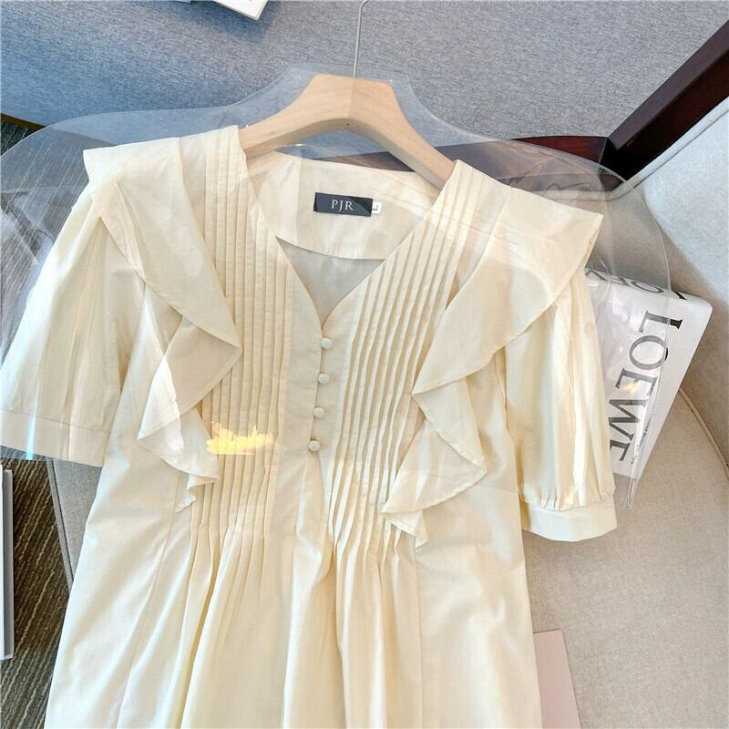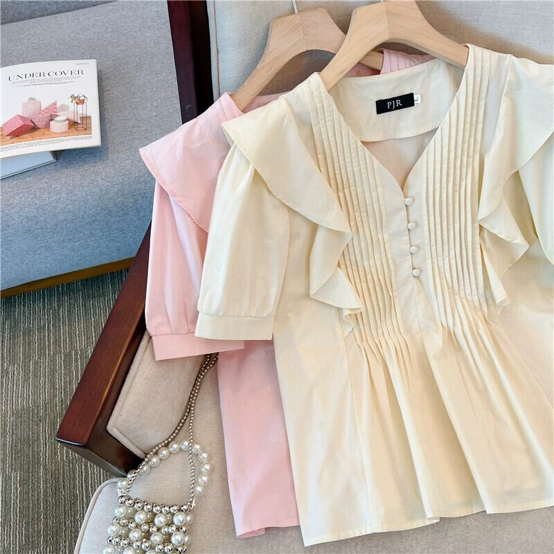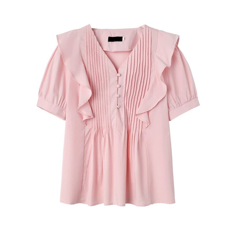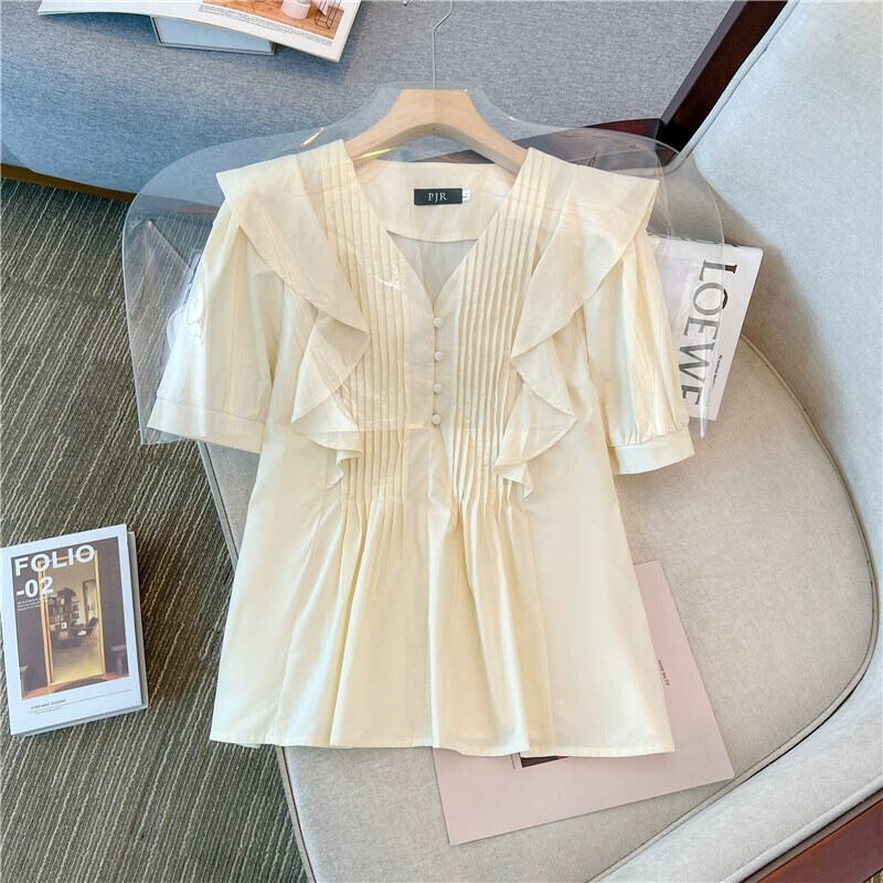 プラスサイズの婦人服 2023 トレンディな女性の夏の新しいスタイルの脂肪姉妹バージョンは肉をカバーし、年齢を減らし、薄いオールマッチフリルシャツ女性を示します 大きめサイズ サマー 夏物 8884198073057181