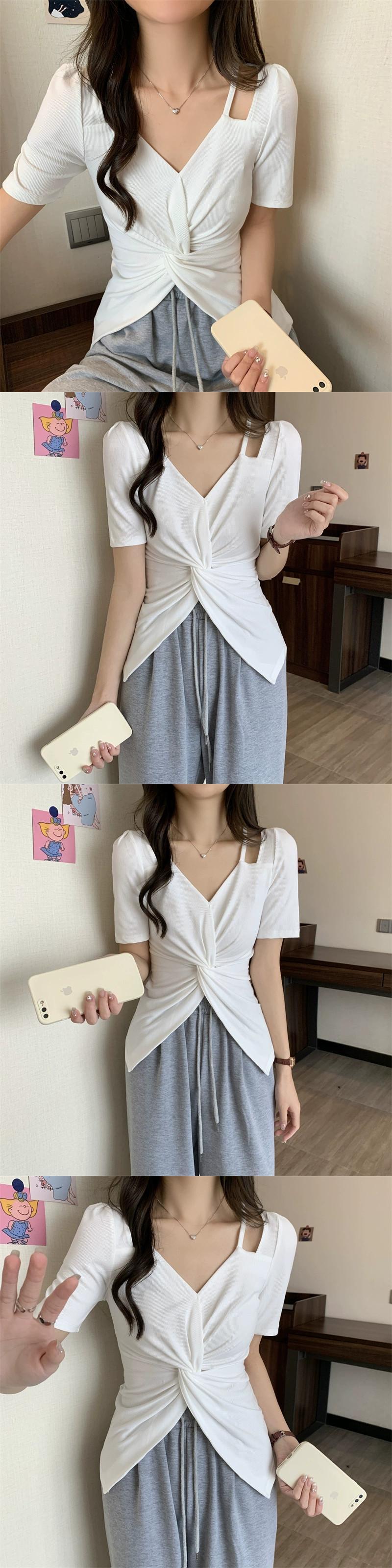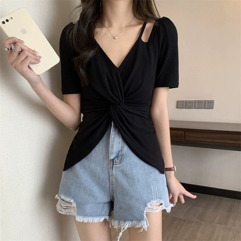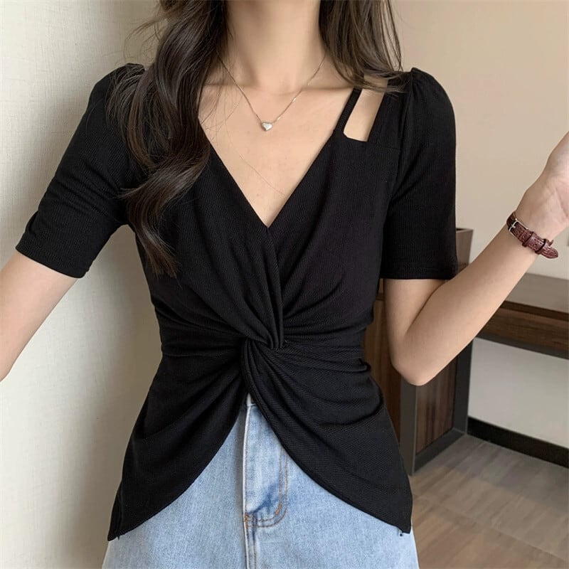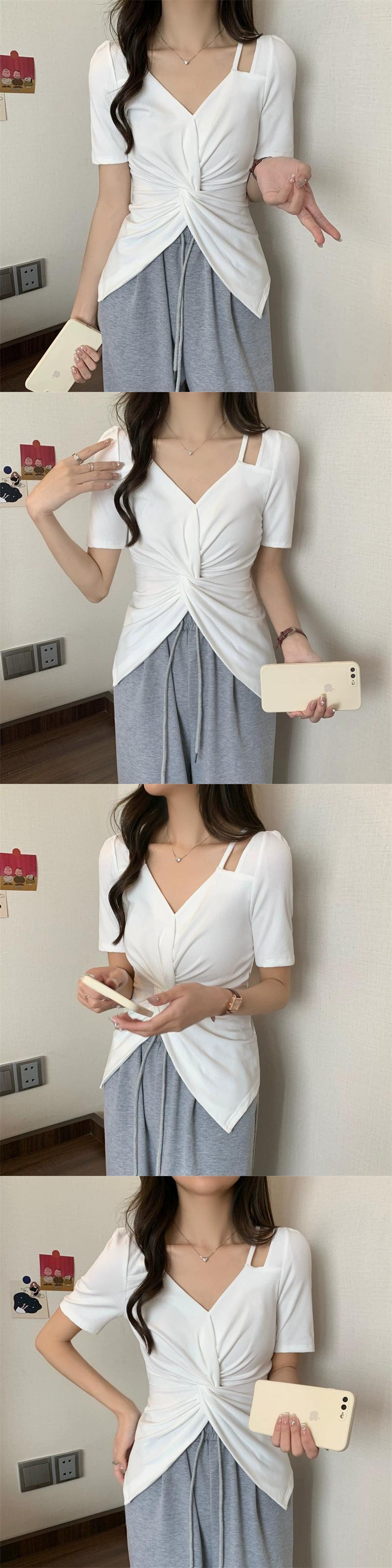 プラスサイズの婦人服 2023 トレンディな女性の夏の新しいファットシスタートレンディな純粋な欲望スタイルのステッチクロスハンギングネック半袖 T シャツ 大きめサイズ サマー 夏物 Tシャツ ピュア 8884152584806003
