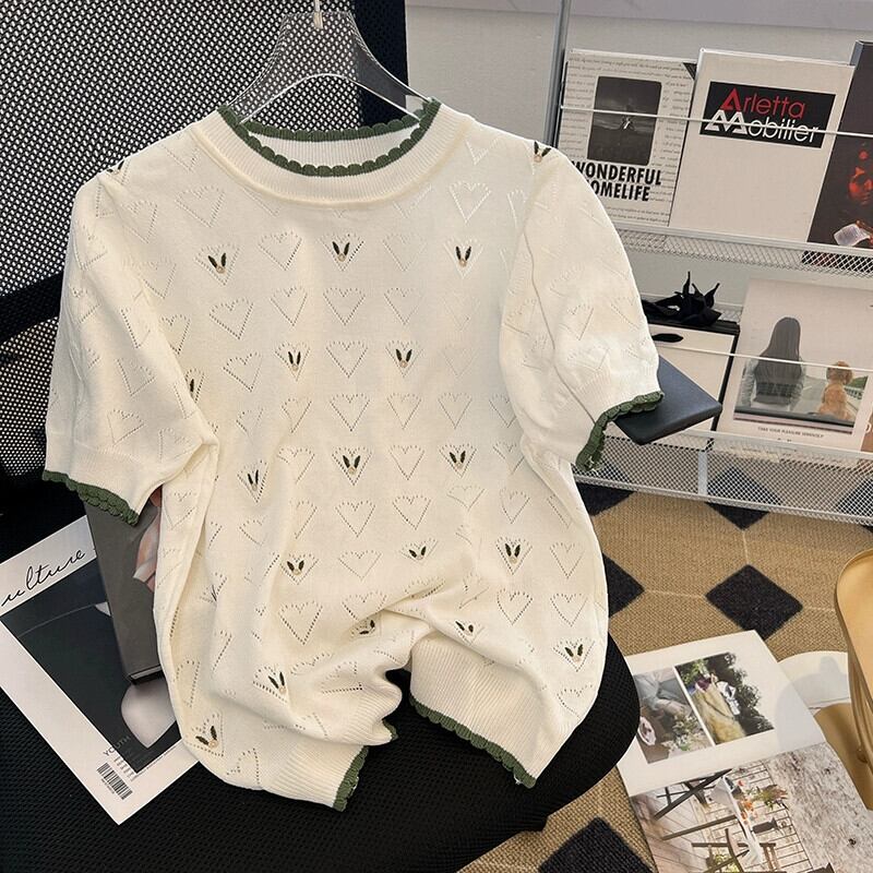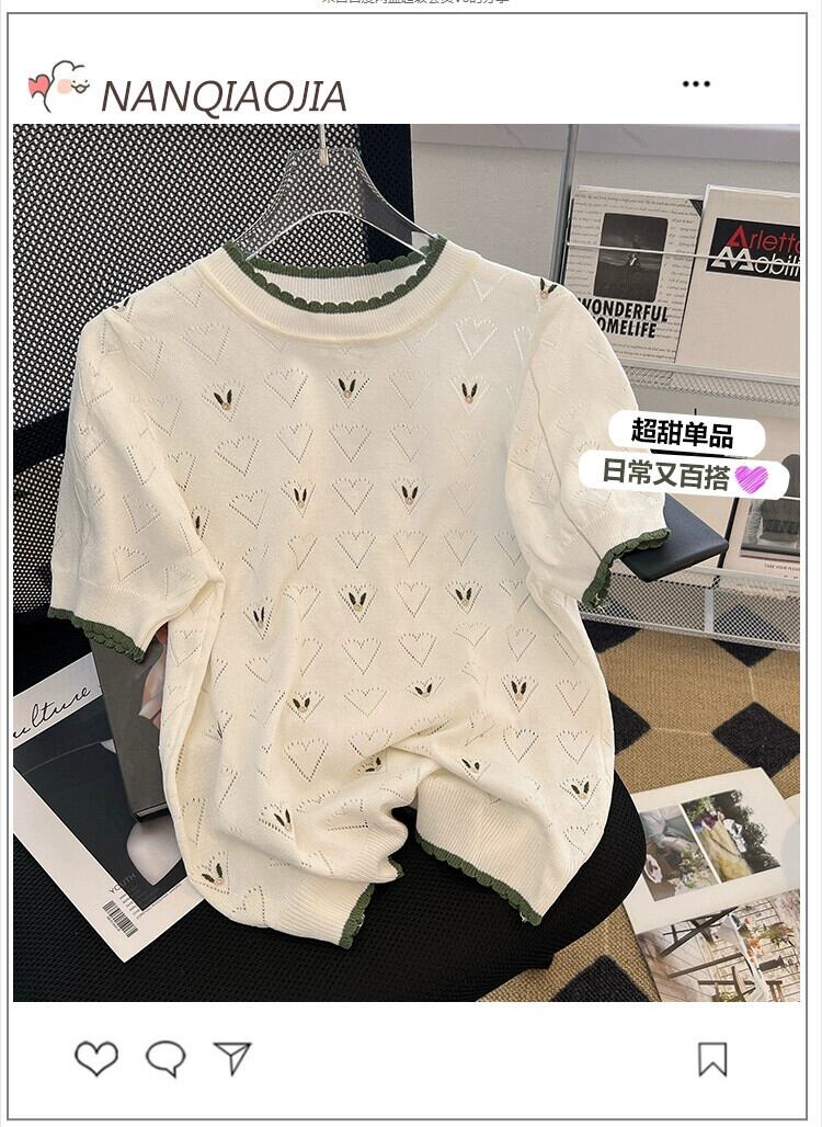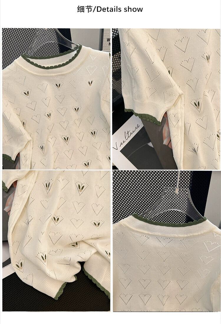 プラスサイズの婦人服 2023 ファットシスター夏新オールマッチニット半袖 tシャツ薄いセクション痩身アイスシルクトップ 大きめサイズ サマー 夏物 8884129069691065