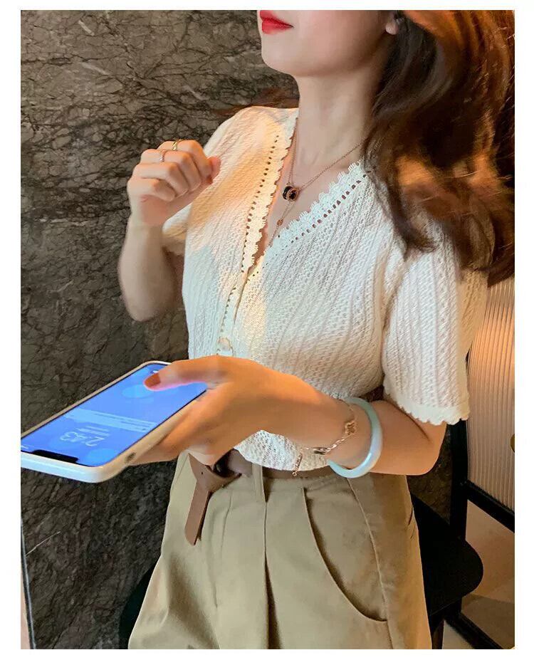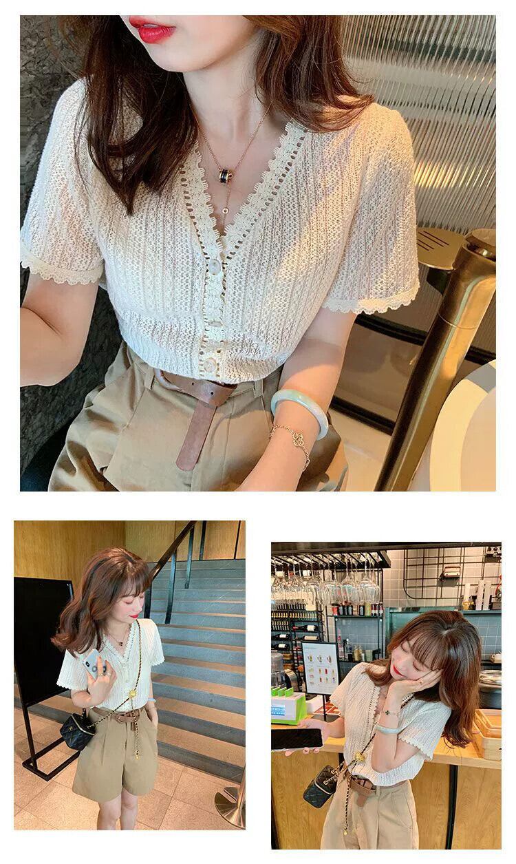 プラスサイズの婦人服 2023 トレンドの女性の夏の新しいファットシスターファッションデザインセンスオールマッチショート中空半袖シャツトレンディ 大きめサイズ サマー 夏物 8884130994196940