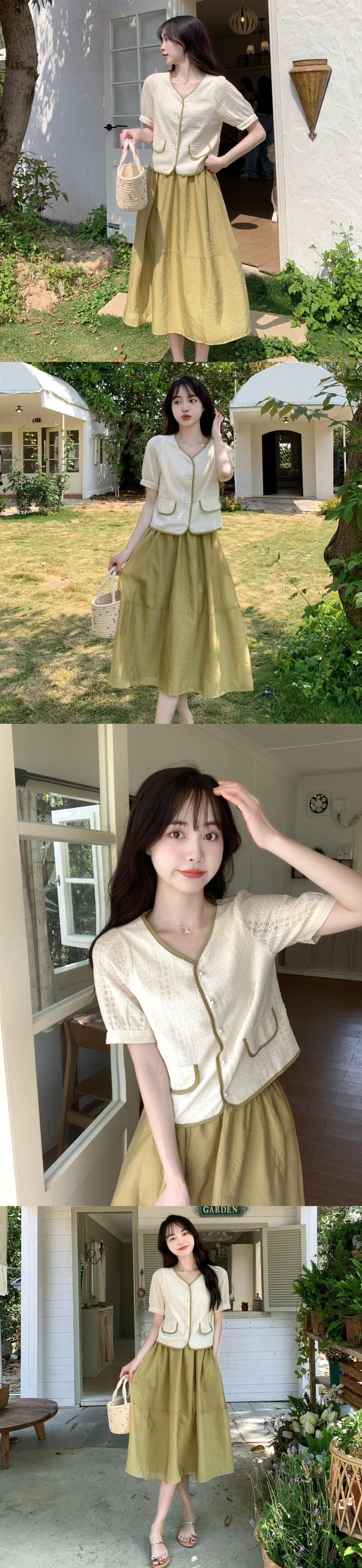色:グリーンツーピース,黒のツーピース