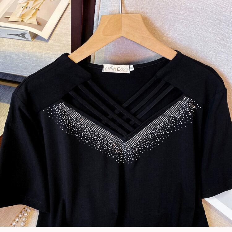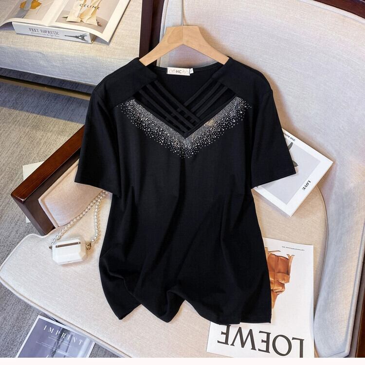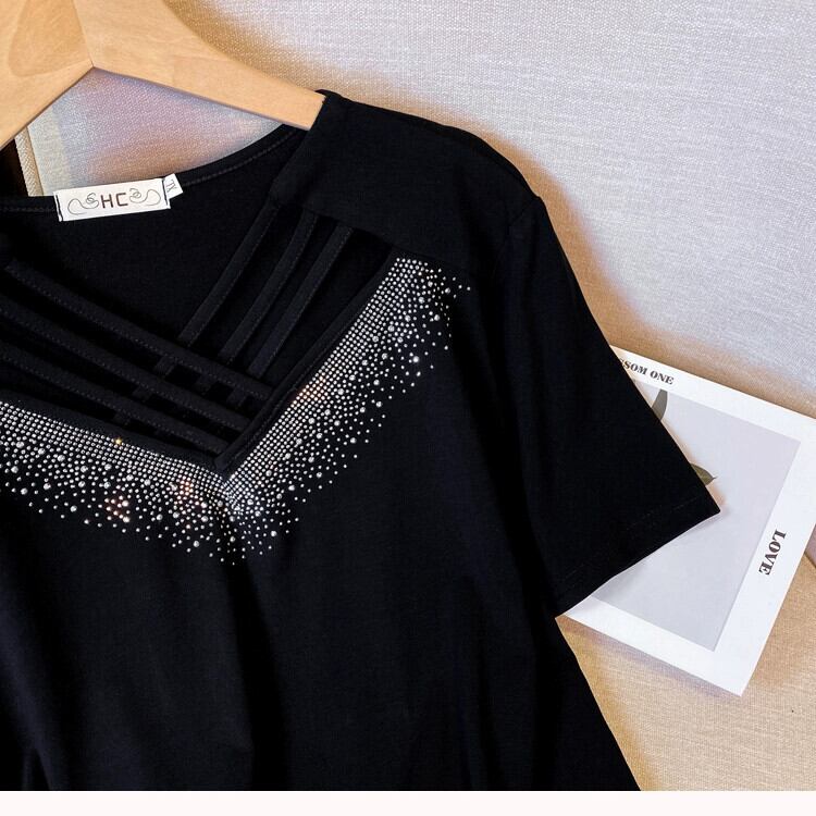 プラスサイズの婦人服 2023 夏の新デザインファットシスターズダイヤモンドバージョンの eign スタイルスリム半袖 tシャツ女性 大きめサイズ サマー 夏物 8884155735360998