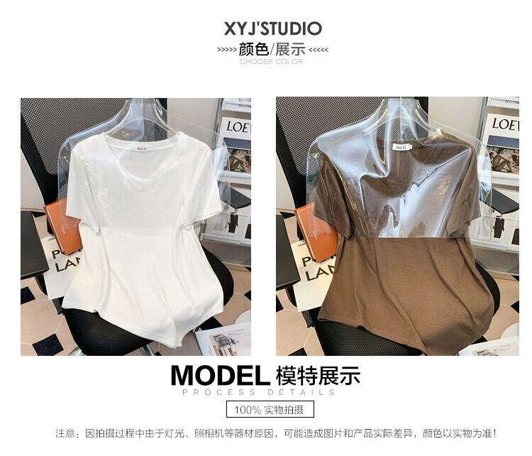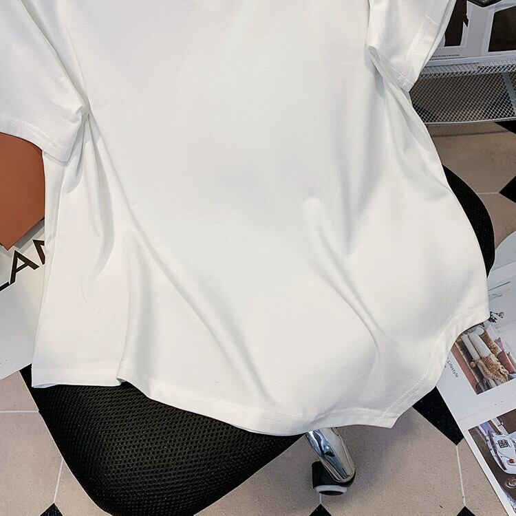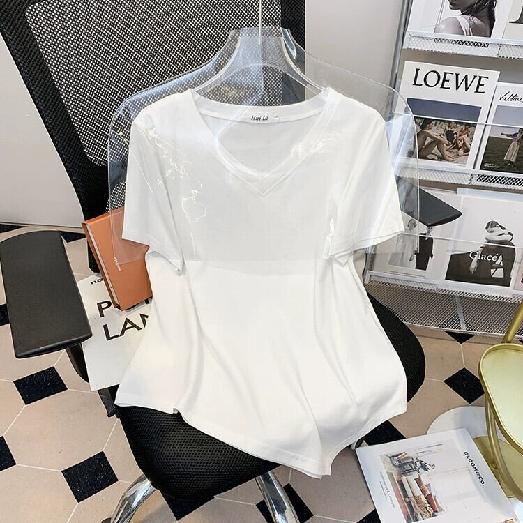 大きいサイズの婦人服 2023 新しい夏服ファットシスターズ不規則なシンプルなボトリングシャツスリム半袖 Tシャツトップ 大きめサイズ サマー 夏物 888418161223246