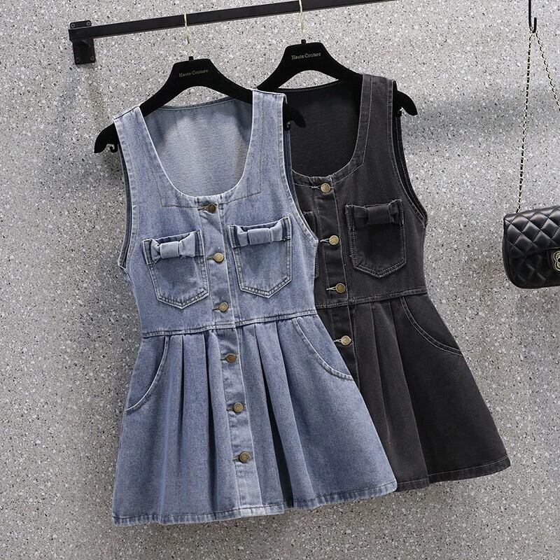 プラスサイズの婦人服 2023 流行の女性の夏の新しい脂肪姉妹年齢削減ノースリーブ eign スタイル薄いデニムストラップドレス流行 大きめサイズ サマー 夏物 8884131615450928
