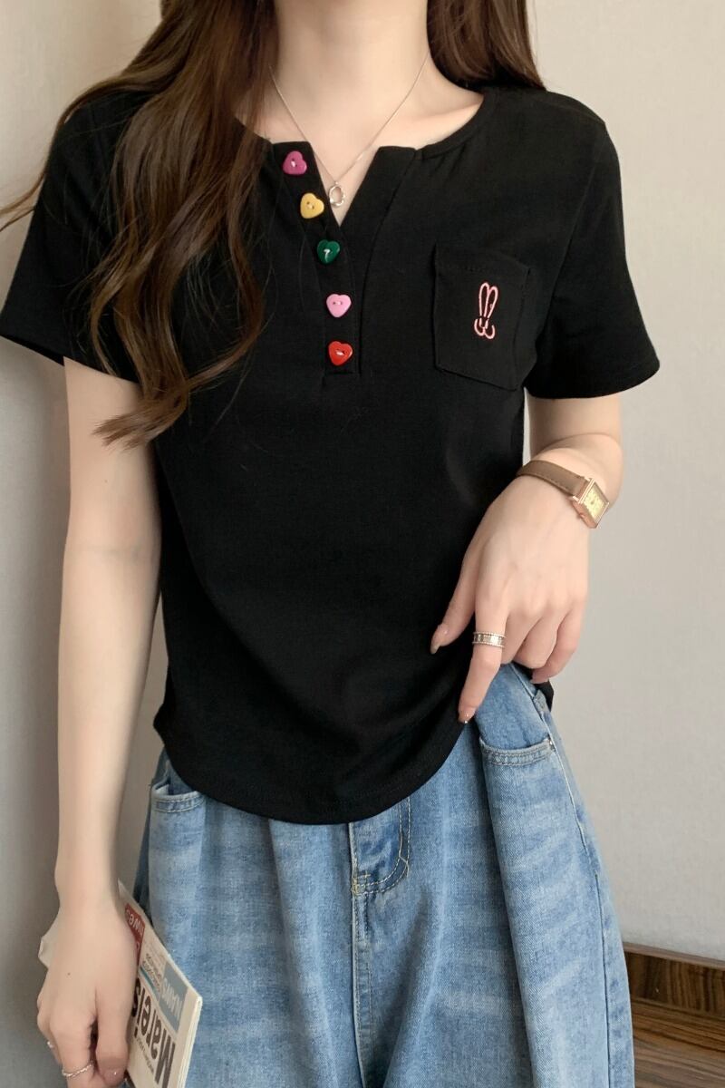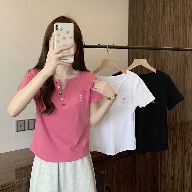 プラスサイズの女性の夏の新しいスタイルのファットシスターオールマッチ薄い刺繍半袖トップレトロ年齢を減らす脂肪mmtシャツ 大きめサイズ サマー 夏物 888413821771309