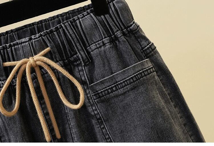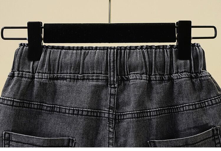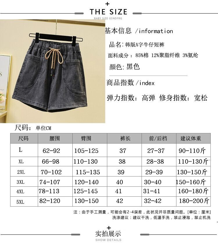 プラスサイズの女性の夏服新しいファットシスター弾性ウエストバージョンスリムデニムショートパンツカジュアルブラックジーンズ エラスティック 伸縮 大きめサイズ サマー 夏物 ショーツ ブルマー 8884118756204122