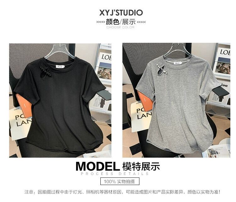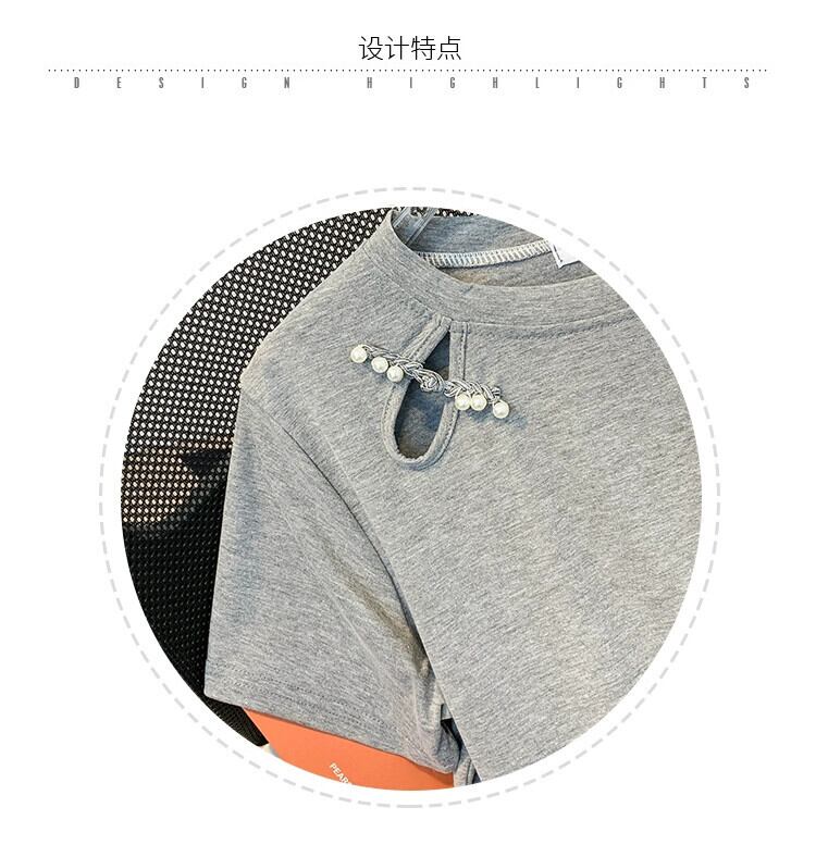 プラスサイズの婦人服 2023 脂肪姉妹夏の新しいデザインセンス薄いレトロ半袖 Tシャツボトシャツトップ 大きめサイズ サマー 夏物 8884129923262749