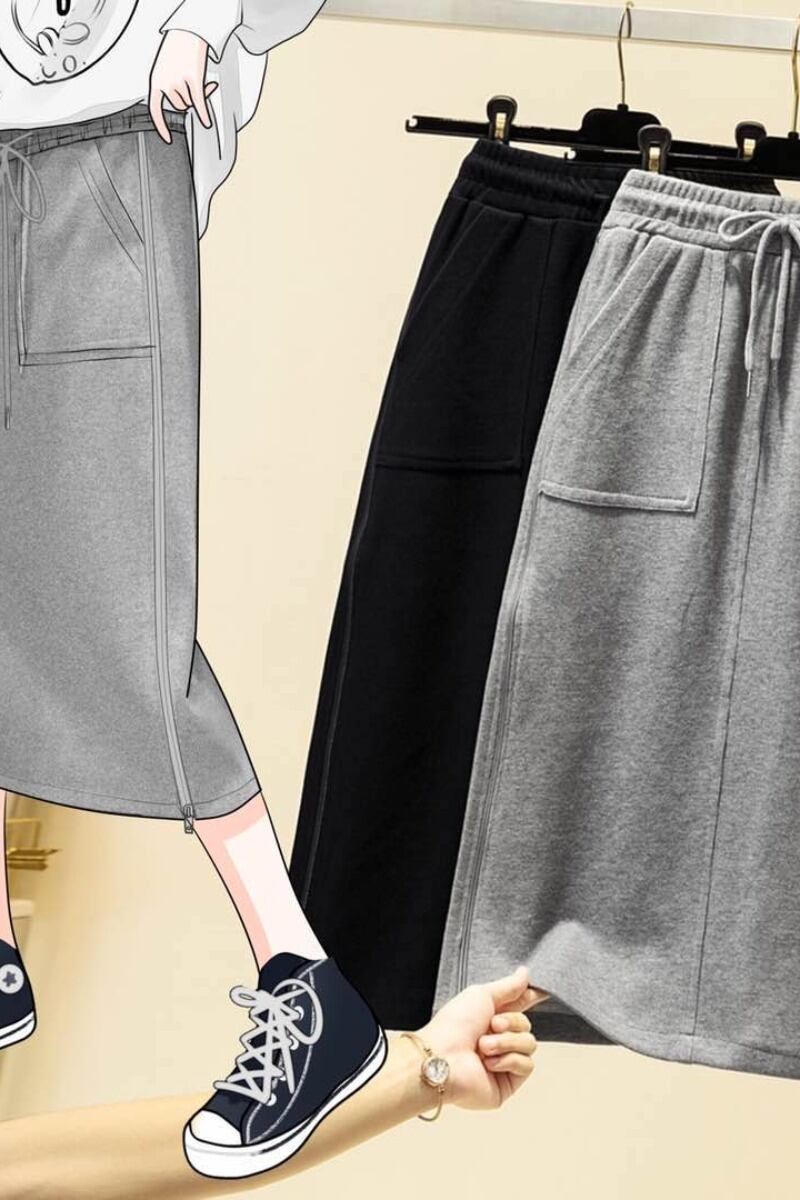 プラスサイズの婦人服 2023 春服脂肪姉妹新しいカジュアルサイドジッパーハイウエストスカート膝上のワンステップスカート ハイウェスト 大きめサイズ スプリング 春物 8884115046333285