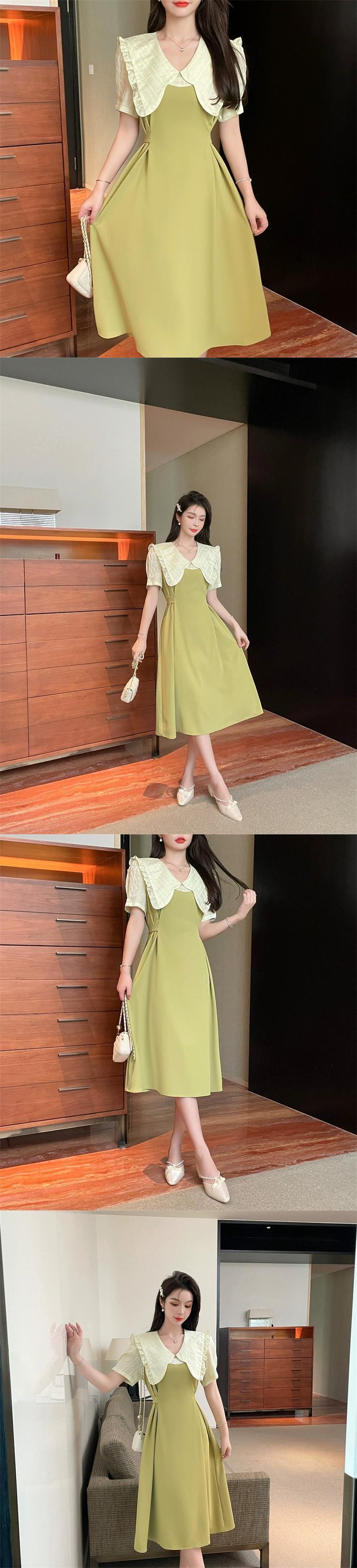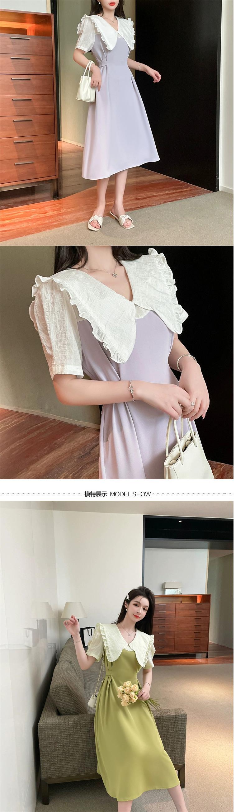 プラスサイズの婦人服 2023 流行の女性の夏の新しいファットシスターフレンチウエスト人形襟年齢軽減偽ツーピースドレス女性 大きめサイズ サマー 夏物 8884177502931828