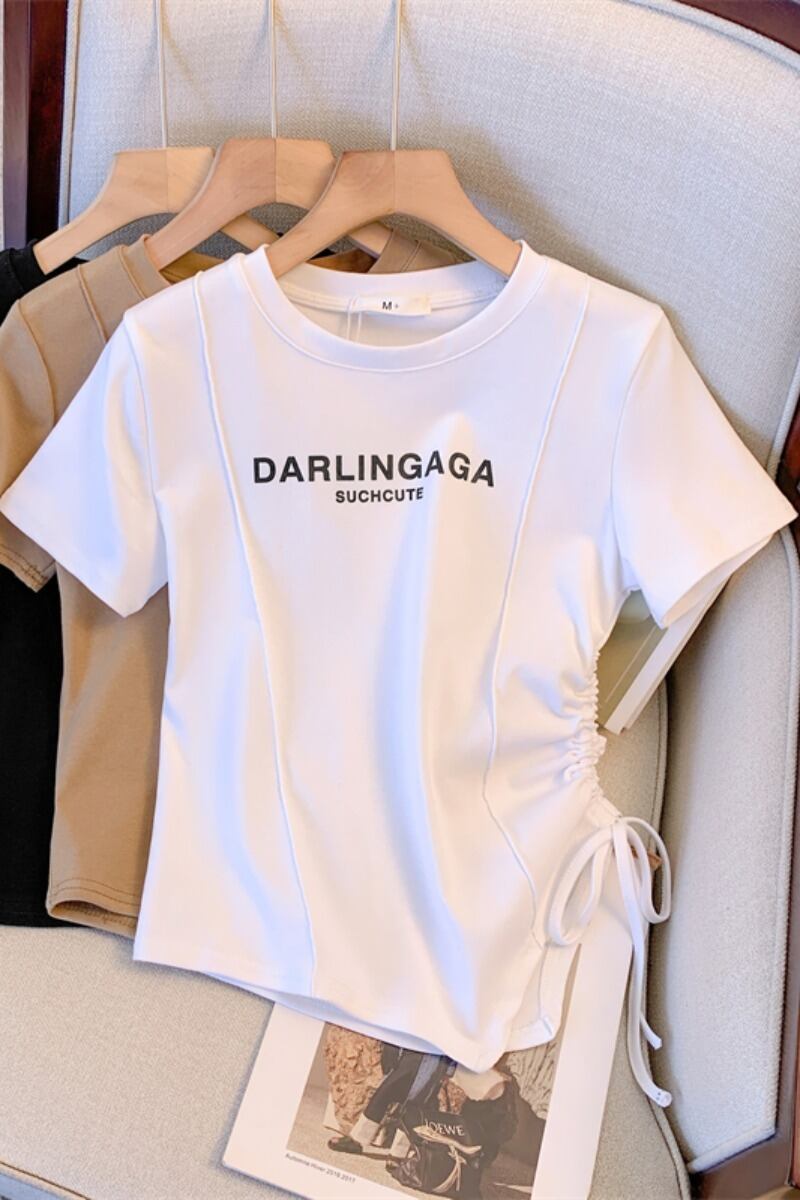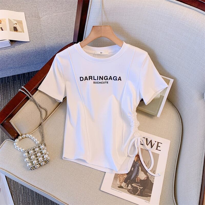 プラスサイズの女性 2023 流行の女性の夏の脂肪姉妹ファッションオールマッチ巾着デザイン半袖トップ tシャツスリム 大きめサイズ サマー 夏物 8884163924685272