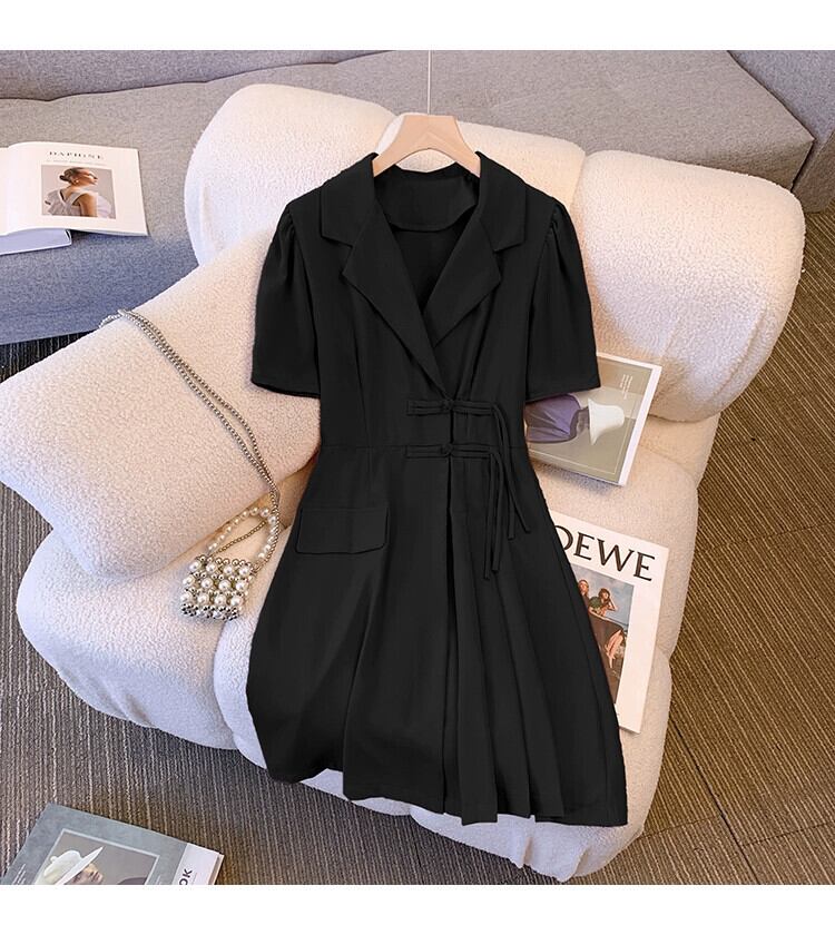 プラスサイズの婦人服 2023 流行の女性の夏の新しいファットシスターファッションオールマッチタイアップ薄いスーツ襟チャイナドレス 大きめサイズ サマー 夏物 8884157663212930